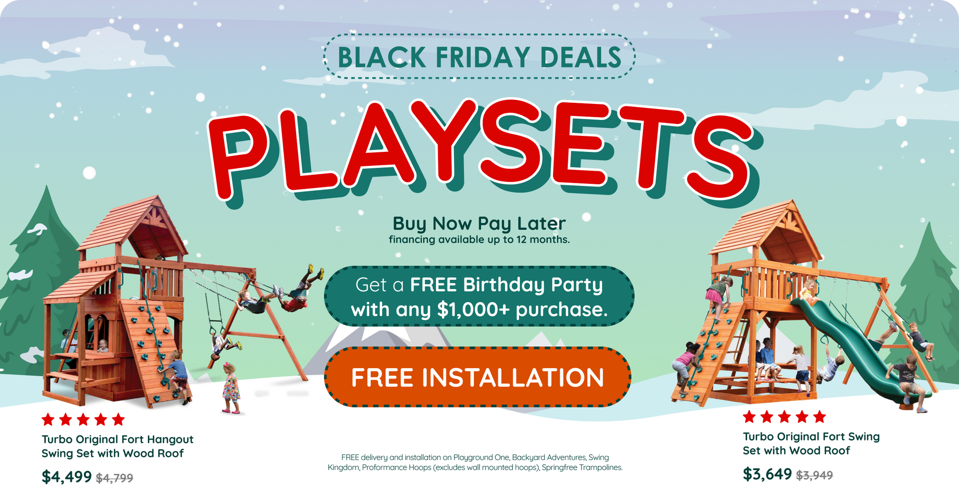 Many playsets can be installed right on grass. If you feel the existing surface isn’t sufficient, we would recommend our Soft Landing Rubber Mulch, wood mulch pit, or turf. We offer full installation on all surfacing.