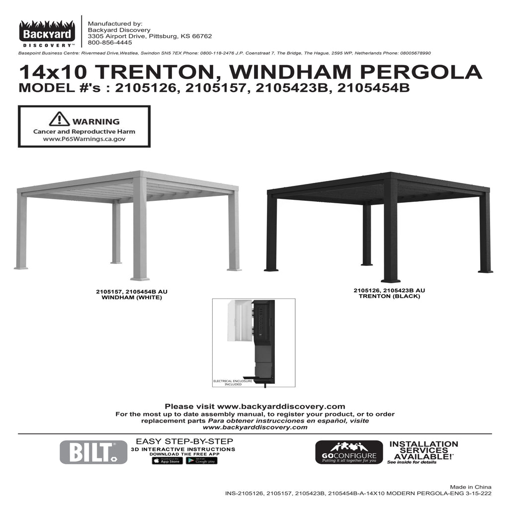 Transform your outdoor space into a modern sanctuary with the Windham Pergola by Backyard Discovery. This contemporary patio pergola combines sleek design with lasting durability, featuring a sophisticated white finish that brings timeless elegance to any setting. Crafted from powder-coated galvanized steel, this outdoor pergola offers exceptional resistance to rust, chipping, scratching, corrosion, and UV damage while remaining virtually maintenance-free. Featuring an integrated shade sail crafted from breathable woven fabric, this durable pergola canopy provides cool comfort for everything from intimate dinner parties to large family gatherings. The Pro-Tect™ tested and proven design withstands winds up to 100 mph*, standing strong through any weather conditions. Personalize your modern pergola with furniture, fire pits, and outdoor décor. The convenient PowerPort™ provides three electrical outlets and three USB ports to easily power devices, lighting, or more. The clean lines of this white pergola create a fresh, airy atmosphere that brightens your backyard while providing a functional space for all your outdoor activities. This ready-to-assemble steel pergola kit comes with prefabricated components and guided support through the interactive BILT® app. Backed by a 5-year warranty, the Windham Pergola outperforms aluminum and vinyl alternatives, delivering superior strength and style to create your outdoor oasis.