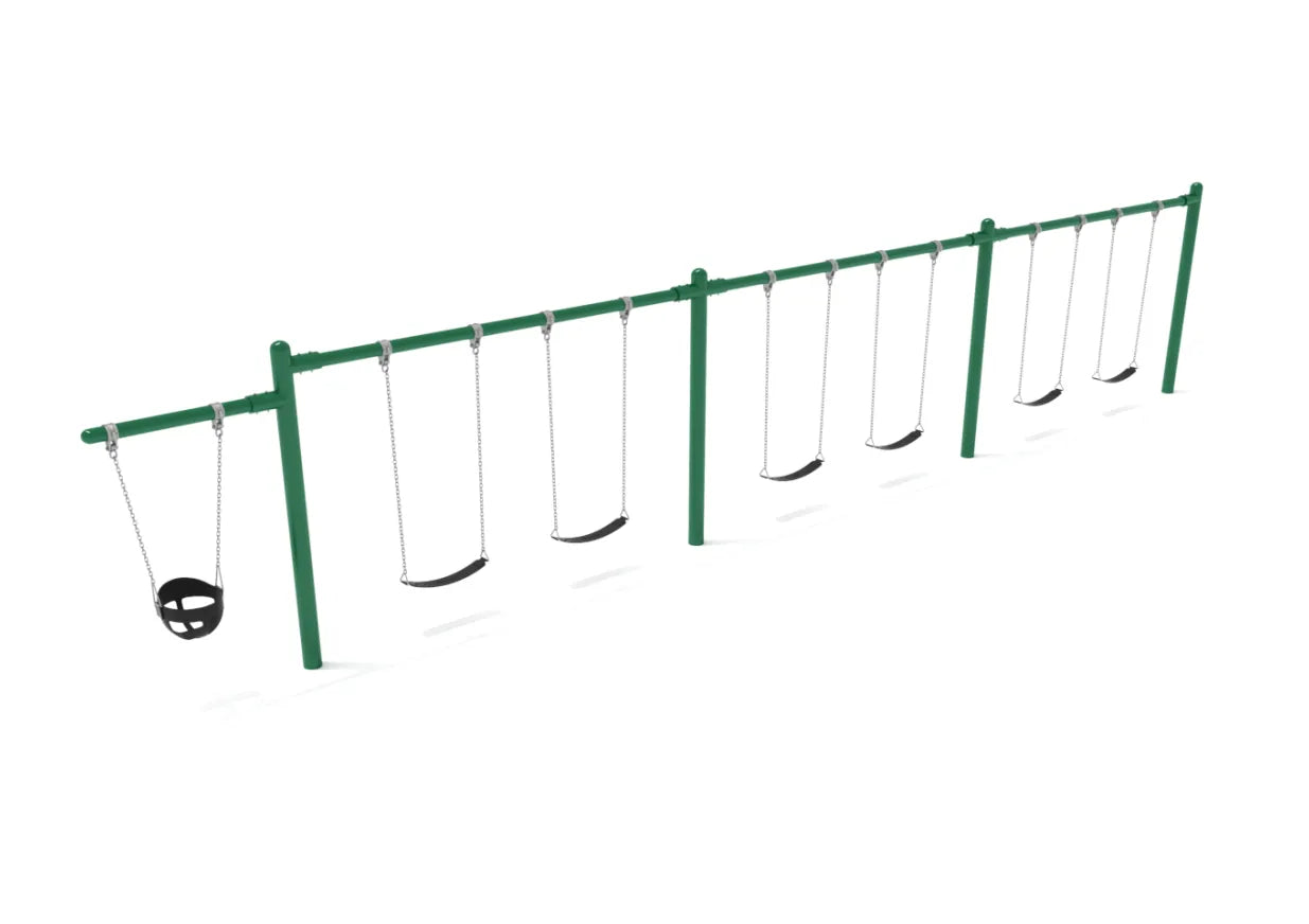 If your existing Swing set just isn't cutting it in terms of capacity, then it’s time to expand. The 7/8 feet high Elite Cantilever Swing - 3 Bays 1 Cantilever lets you do just that. The three bays can hold up to six swings in total which means there’s less waiting and more swinging! These three bays are 8 feet high so that kids can enjoy a full range of motion. There's also a 7 feet high cantilever swing which comes with a bucket seat for younger kids who are new to the swinging world and want to overcome their swinging fear. This 7/8 Feet High Elite Cantilever Swing - 3 Bays 1 Cantilever is ideal for small and mid-sized play areas as it accommodates 7 kids at once without requiring much space. You can also choose any color of your choice for this swing set to match your play area's theme. Get this swing set and say goodbye to waiting times.