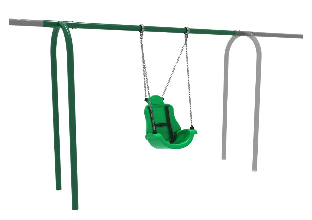 If your existing Adaptive Swing set can’t keep up with the high demand, the 8 feet High Elite Arch Post Adaptive Swing - Add a Bay lets you expand. This simple expansion kit extends your existing swing set by making space for another high-capacity adaptive seat. With one more swing available, kids with disabilities or simply younger kids needing safety get more time in the air and less time watching from the sidelines. There’ll be fewer meltdowns over whose turn is next. You can choose to add just the bay or get the full set that includes a High-Capacity Adaptive Seat with belts for extra support. The kit comes with all the hardware and extras needed for installation to get your new swing bay ready in no time. And don’t worry about compatibility issues. The Swing set will be of the same quality and dimensions as your existing Elite Arch Post swing set. You can also choose the same color for it to fit in perfectly.