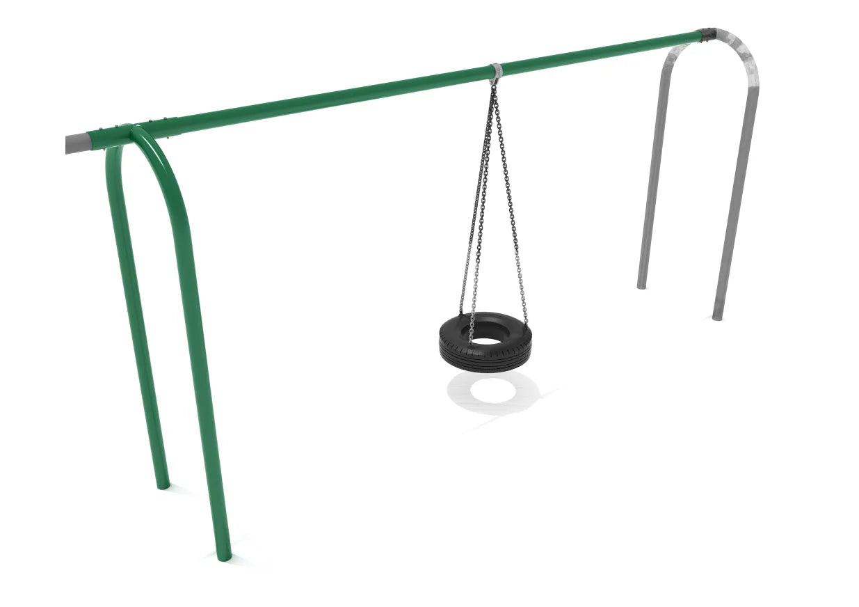 Tire swings are an amazing structure to have on any playground. Kids love them, but soon after installing it, you may realize that one is simply not enough. If your playground needs a second tire swing so that every child can have their chance to ride, then you need this 8 feet high Elite Arch Post Tire Swing - Add a Bay. This dynamic kit will transform your tire swing set by doubling its capacity. Please note that this Add a Bay option is only compatible with our 8 feet high Elite Arch Post Tire Swings. The add-on branches out from the side of the swingset, and features the same charming appearance and wide design that gives the tire plenty of room to swing in every direction without risk of bumping into any part of the structure.