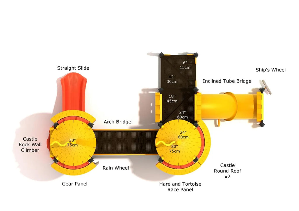 The Arrow Loop Archer is built without challenging ladders or climbers with toddlers in mind. Kids aged between 1-3 years can board the first deck playset by raising their feet just a little. For kids who are daring from a younger age, there’s a Castle Rock Wall Climber to scale the structure in style. Another fun way to climb the playset is through the gently Inclined Tube Bridge. The kids who attempted the rock wall climber will immediately be greeted with a Straight Slide as a reward. This slide is tiny but enough fun for the kids to ride it. Aside from the slide, there are also a couple of activity panels on the platform. This includes the Gear Panel, which offers a fun way to learn how machines work, and the Hare and Tortoise Race Panel, which can engage two kids at once. An Arch Bridge suspends between the Arrow Loop Archer, offering a fun crossing. The playset also engages kids on the ground with the Ship’s Wheel and the Rain Wheel.