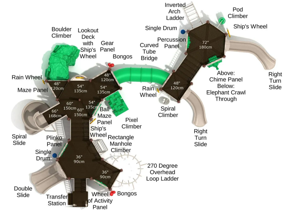 There’s so much to experience on the Bonita Bay that kids will be awed at the structure. The play equipment is designed to give kids everything they could wish for and includes awesome activities like the 270-Degree Overhead Loop Ladder kids can navigate their way round, ending up on the starting platform again. Multiple ways to climb onto the three hexagonal platforms bring much needed diversity, so whether they are balancing their way up the Inverted Arch Ladder, using the cubed Pixel Climber, or scrambling up the realistic Boulder Climber, they’re making use of a range of physical and mental skills. Children will enjoy snaking their way through the Curved Tube Bridge between platforms, and as a reward for all their climbing efforts they can choose from two Right Turn Slides, a Double Slide for racing, or a Spiral Slide to twist their way to the ground. In addition, there’s a fun Lookout Deck with Ship’s Wheel for pirate adventures, alongside a wealth of interactive panels to sharpen their skills.
