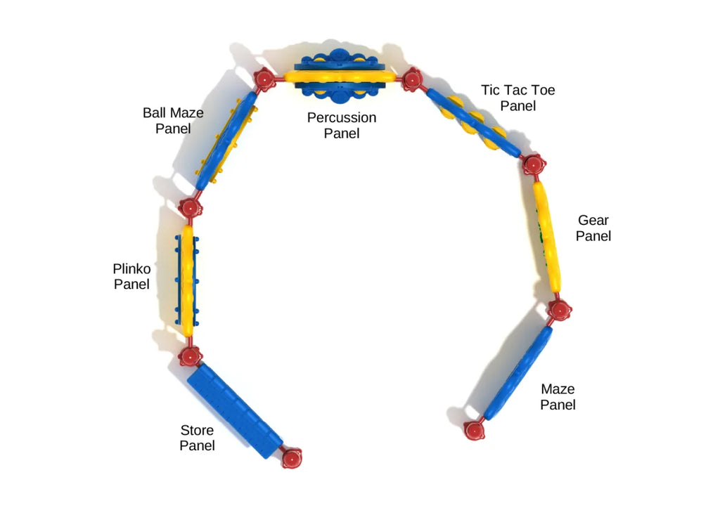 Camp Walden is the perfect retreat for kids who want an escape from the hullabaloo of the playground. This kids' corral playground set features seven of our best activity panels with options for every child to enjoy. Regardless of their age or level of physical ability, kids will find something fun in the Camp Walden set. The activities in the Camp Walden kids' corral playground set are all great for kids to enjoy by themselves but even better when played with a friend or two. The Tic-Tac-Toe and Plinko panels bring games to your playground so that children can compete against each other. The Store Panel is a window-shaped base for all manner of imaginary activities. Kids can pretend they're at a drive-through or running their own market stall. The simple Gear Panel provides another creative outlet for youngsters with a mind for mechanics. There are two different styles of maze panels for fun solitary challenges and a percussion panel so that kids who love music can underscore the whole area with rhythm. Best of all, the activities are all two-sided, so kids will never have to wait if their favorite activity is occupied. The double-sided nature provides games for 14 children at any given time. Many children need a break from the chaos and hard play that the playground encourages. Shy children, children with autism, anxiety, and other differences need space to decompress and have a quiet moment to themselves. Camp Walden is designed to be a haven for these children, providing a barrier against sights and sounds that can cause overstimulation. This kids' corral playground set also encourages imaginary play and puzzle-solving so playground fun engages the brain as well as the body. It's easy to see that the Camp Walden kids' corral playground is a versatile piece of equipment that can solve a number of playground needs at once. Get a free quote today to add this affordable and fun fixture to your play area!
