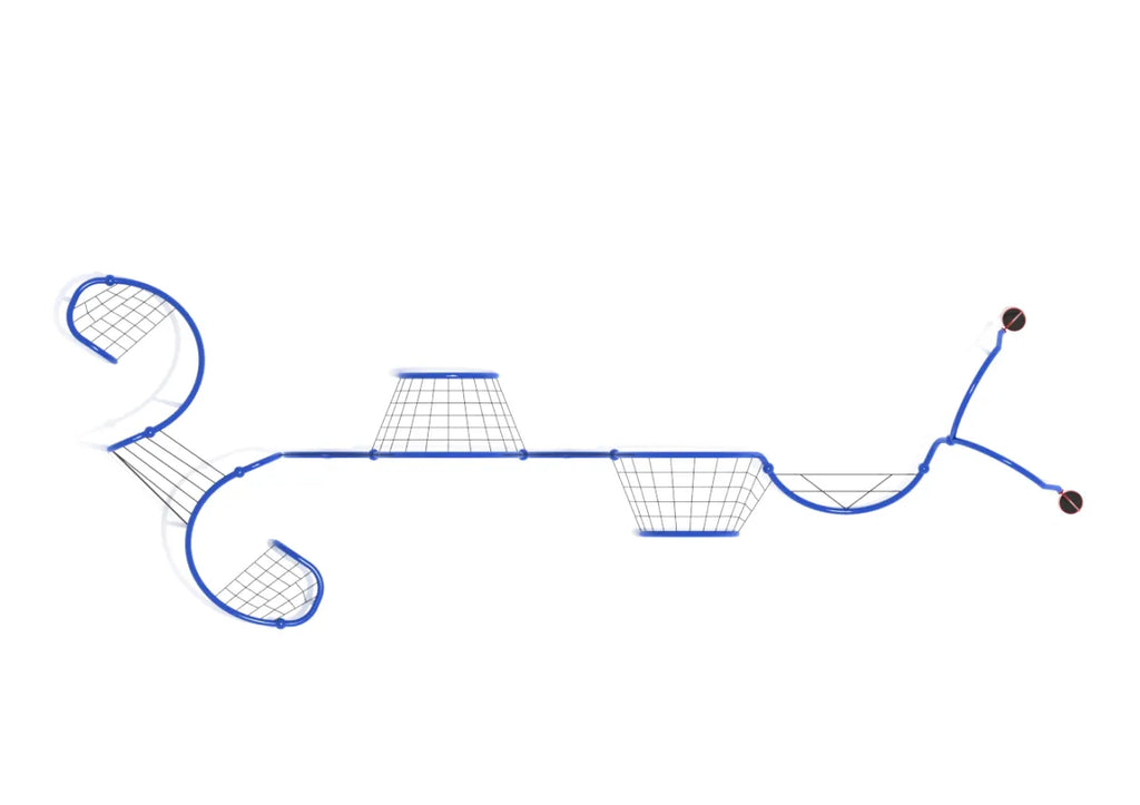 Looking for a compact version of the Spacewalk Course? The Celestial Channel is the perfect fit for your playground. Accommodating 50+ kids, this structure has a fall height of 110”. It has steel ropes with nylon coverings, and the steel bars are galvanized. This way, it lets multiple kids stomp their way onto its surface without any wear and tear! The netting is gentle on young explorers’ hands, albeit strong enough to support the weight of 5 dozen of them. At the end of the Celestial Channel, a spinner lets them break away from climbing-related activities. While on the structure, kids can navigate different climbing paths & structures. Going up and down this galactic field, you can just picture happy faces engrossed in play-acting like Cowboy Bebop. They crawl, climb, jump, duck, and make new friends on the net. Playtime becomes a stage for socialization. In short, there’s no restriction on how kids decide to have fun here. It eggs them to explore and express themselves.