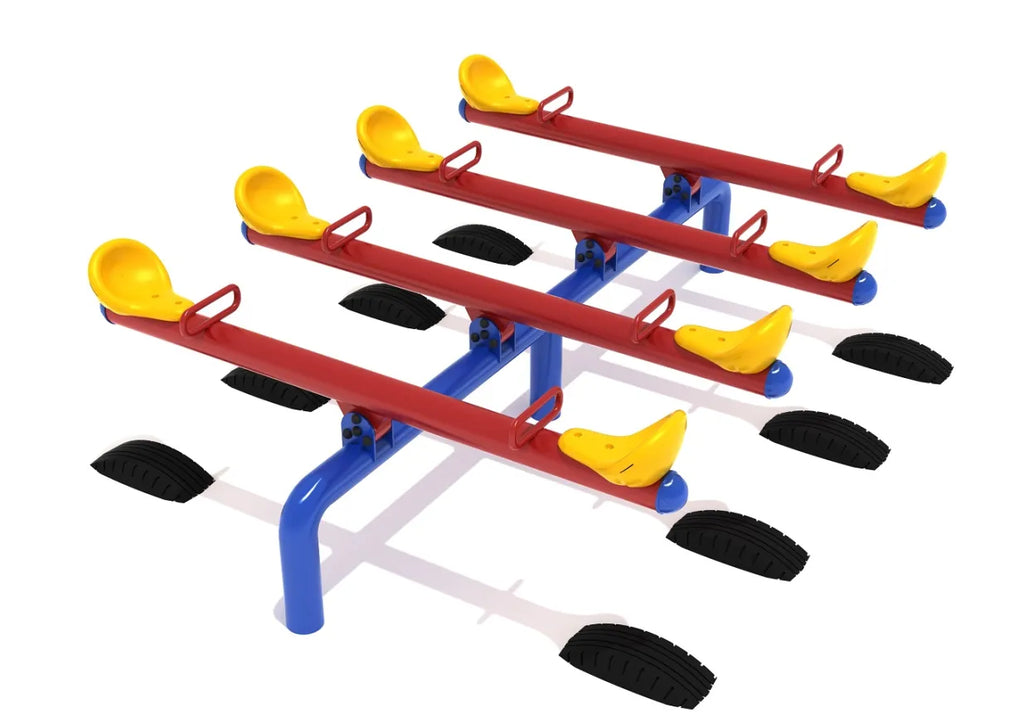 The Classic Playground Seesaw is a timeless playground favorite that just never dies out. It’s the ultimate friendship-building ride on the playground. This seesaw ensures maximum kids can play at once, with options ranging from two seats all the way up to eight. Elementary-aged kids will learn to coordinate their movements with their friends, which is an essential skill for teamwork. The Classic Playground Seesaw is made from high-quality, commercial-grade materials that can handle the wear and tear and test of weather for years to come. The powder-coated beam of the seesaw also remains fresh as new thanks to its powder-coated finish. A plethora of color options are available to choose from for this powder coated finish. The seats are also firmly fixed on each side of the beam and won’t loosen under any pressure. Children can hold the handles if their partner is giving them a tough time. The tires are required under each seat and can be bought separately.