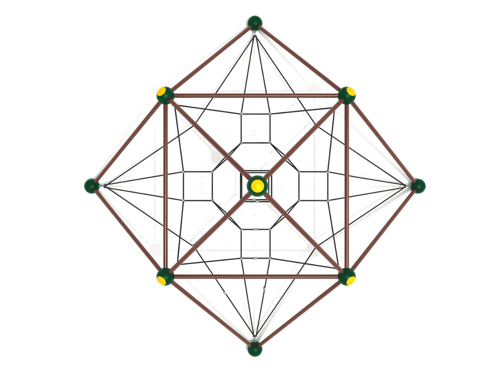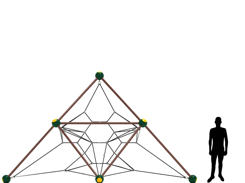 The Cosmic Crest is made with a catchy design of four interconnected triangles. These triangles form the backbone of the climber as the nylon-covered steel ropes are tightly fastened inside it. Kids will get the hang of balancing while enjoying the gentle bounce that the flexible ropes naturally offer. In the meantime, the steel frame around these ropes will offer extra support as kids can rest their weight or grab hold of the steel frame bars when they need to catch their breath. And as kids pull themselves up, balance on the ropes, and stretch their limbs, they’ll be engaging key muscles in their arms, legs, and core. The strength developed through these little workouts will help kids master other challenging playground equipment and will even with tasks beyond the playground. And don't worry, the Cosmic Crest is the perfect size for elementary-aged kids ( you can see the comparison to an adult male in the final image). The frame of the structure also comes in a variety of colors to match your playground’s vibe.