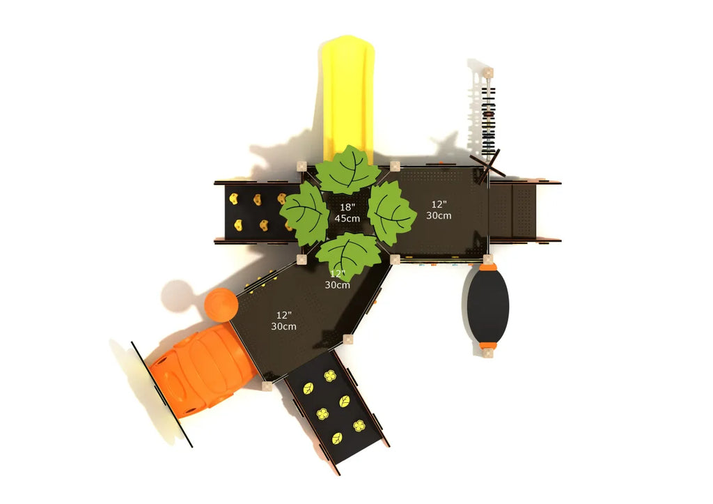 Let toddlers play, explore, and learn in the nature-inspired world of Dogwood. This toddler playhouse is designed for children ages 6–23 months and features a bright orange caterpillar crawl tunnel, gentle climbing ramp, interactive clock panel, flower gear panel, and nature-themed graphics that encourage imagination and movement. Leafy canopy accents and playful forest details invite kids to discover, crawl, and climb in a safe and engaging space. Whether crawling through tunnels or spinning activity gears, children build strength, coordination, and early social skills. Dogwood is the perfect fit for parks, preschools, or any space prioritizing safe, enriching toddler play. This structure comes in two variants: SteelGuard and SaltGuard. SteelGuard Canopy Minis are characterized by their galvanized steel posts and components with a wood grain finish, while SaltGuard structures feature corrosion-resistant stainless steel and aluminum, making them perfect for coastal environments with harsh weather.