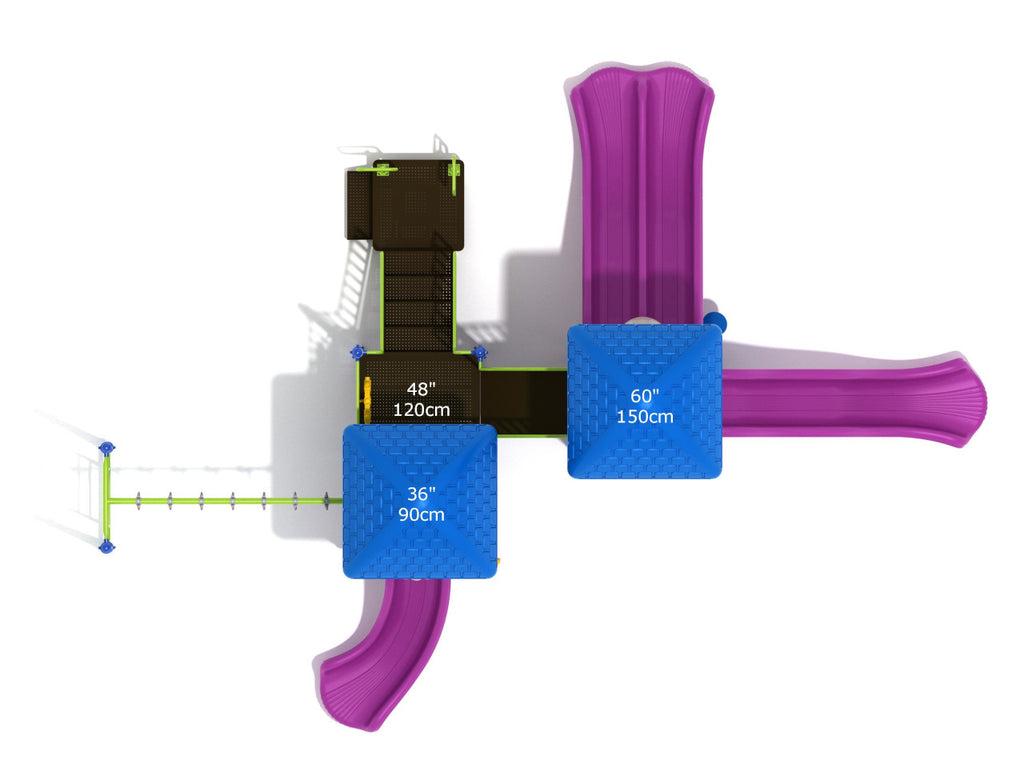 When we say Dubuque has something for everyone, we mean it. The younger kids aged 5-6 who can not take up on challenging climbers can access the Dubuque from the Transfer Station. Upon reaching the deck, they can play pretend games with Rain Whell or simply enjoy the sliding experience using the short Right Turn Slide. However, kids aged 6-12 who are looking for some challenge can climb their way up the deck either through the Rock Climbing Wall or using an Overhead Straight Swinging Ring Ladder. The Ring Ladder, while may appear easy, is one hell of a challenge. It has 7 hanging straps that kids can cling on to and pretend like they are commandos to swing their way to the shorter 48'' deck. Once up on the deck, they can maximize their fun by sliding their way down through the Straight or Double Wave Slide. Throughout the deck stations, there are sturdy rails to protect kids from falling or tripping over, no matter the crowd.