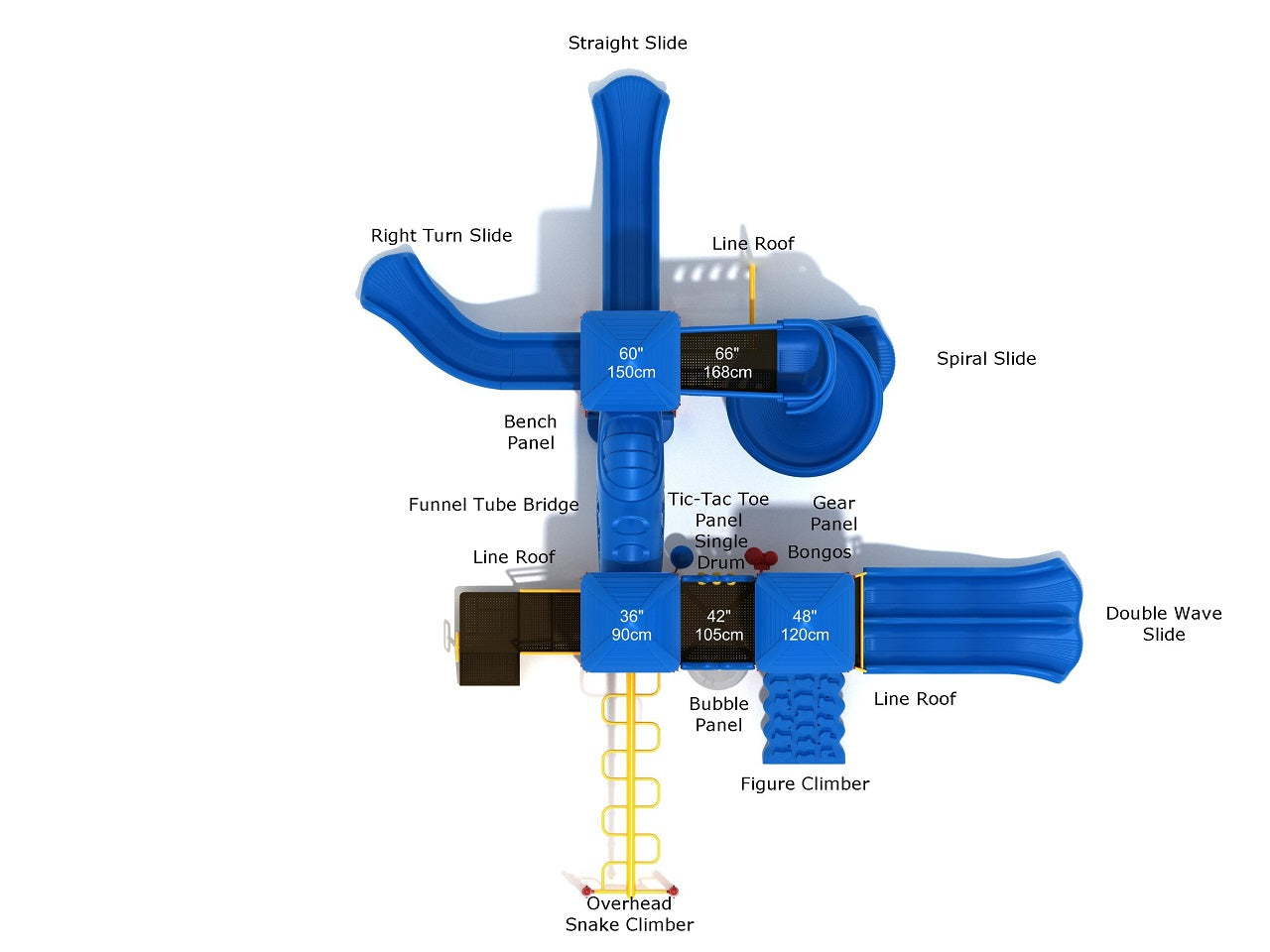 With its 5 slides, Electric City can be the most popular structure in your playground. After all, it has Bubble & Gear Panels that transform this playground equipment into a fantasy world. Kids can pretend to be pirates, explorers, city builders, or whatever their imagination leads them to believe. The Funnel Tube Bridge can be their secret passage or lookout point. They can gather here from time to time to pass stories or simply get out of the roaring Sun when it is high noon. The Figure and Overhead Snake Climbers will add a touch of mountaineering to their adventures. Kids can imagine crossing the Jumanji forest, evading obstacles, and staying ahead of chasing cheetahs. The Tic-Tac-Toe Panel will make them host a tournament where they can compete against friends intellectually. It’ll be a much-needed break from their rough jungle cruises. Using the slides, young explorers can set up relay races to see who races down all five sooner than others.