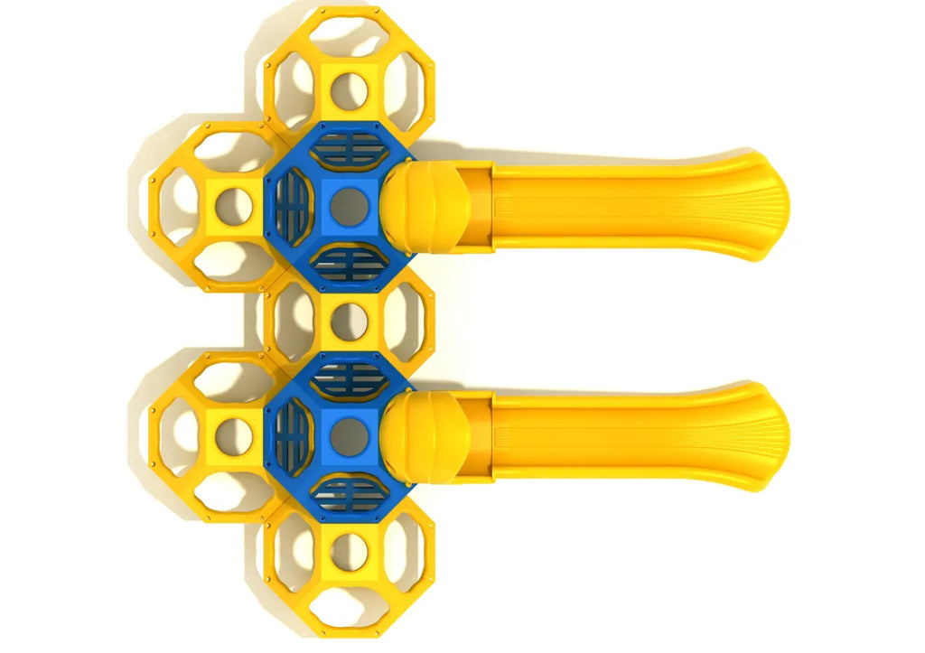 Unlock the magic of math and motion with Euclid’s Universe—a dynamic play structure that blends geometry and fun in a brilliant design! Featuring interlocking polyhedral climbers and dual wave slides, this structure encourages kids to crawl, climb, and explore from every angle. The bold blue and yellow color scheme adds visual energy, while the open geometric shapes promote spatial awareness and motor skill development. Perfect for ages 2–12, Euclid’s Universe is compact yet packed with play value, making it an ideal choice for preschools, early learning centers, and community spaces. Bright, bold, and brain-boosting—Euclid’s Universe makes playtime smart and exciting!
