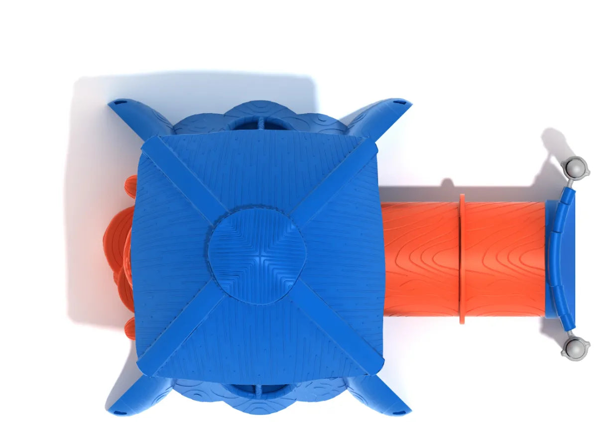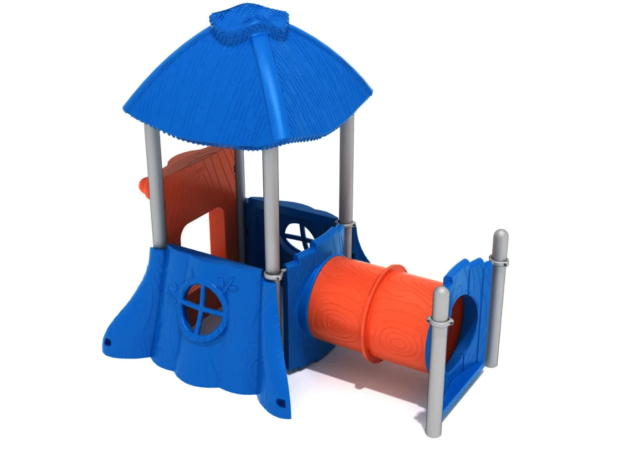 Kids can stay dry and out of the sun under the Club House Roof of the Forest Market play set. Designed to function like a store where kids can either pretend to be the storekeeper selling their items, or the customer coming to the Stump Store Panel at the front to buy anything their imagination can dream up. The main store panel has a wood grain look with branch and leaf detailing to make it appear as if it’s been carved into a wooden trunk. The two Stump Window Panels on either side let kids look out of both sides and they can even talk to their friends. These too have wood grain details molded into the plastic, and the effect is carried on with the Trunk Crawler which looks like a hollowed out log. It is the only way into the store, so kids will love to imagine that it’s a secret passageway and they’re really entering the inside of a tree trunk through it. The whole structure is created from molded commercial-grade plastic so it can be used outdoors all year long.