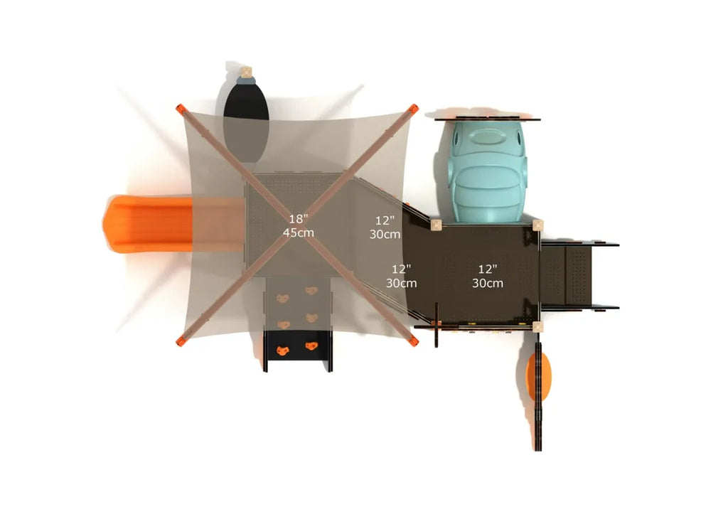 Fuchsia is a modular toddler playhouse created for high-traffic, early childhood play environments. Engineered for kids ages 6–23 months, this commercial-grade structure features a crawl tunnel with owl detailing, flower-themed ramp, gear and mirror sensory panels, a canopy roof, and a hammock-style toddler slide. The nature-themed design provides a friendly, engaging environment that supports gross motor development, tactile play, and early social skills. With soft, rounded shapes, ground-level safety, and commercial durability, Fuchsia is ideal for preschool yards, municipal parks, or daycare centers. Quick to install and built to last, it's a favorite among dealers looking for high-quality toddler playground solutions. This structure comes in two variants: SteelGuard and SaltGuard. SteelGuard Canopy Minis are characterized by their galvanized steel posts and components with a wood grain finish, while SaltGuard structures feature corrosion-resistant stainless steel and aluminum, making them perfect for coastal environments with harsh weather.