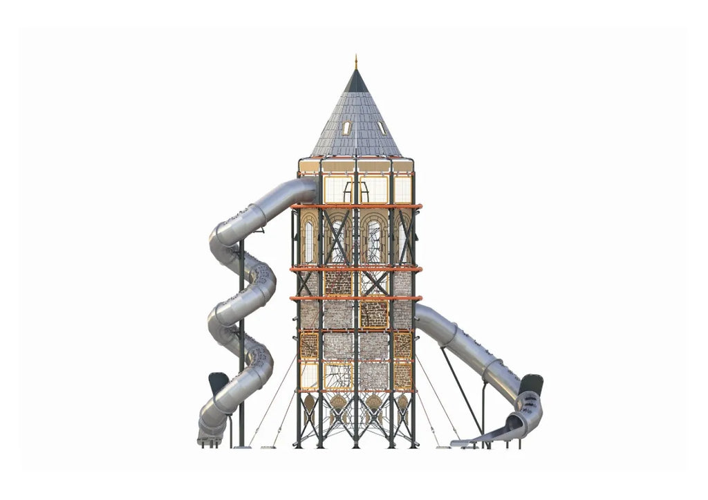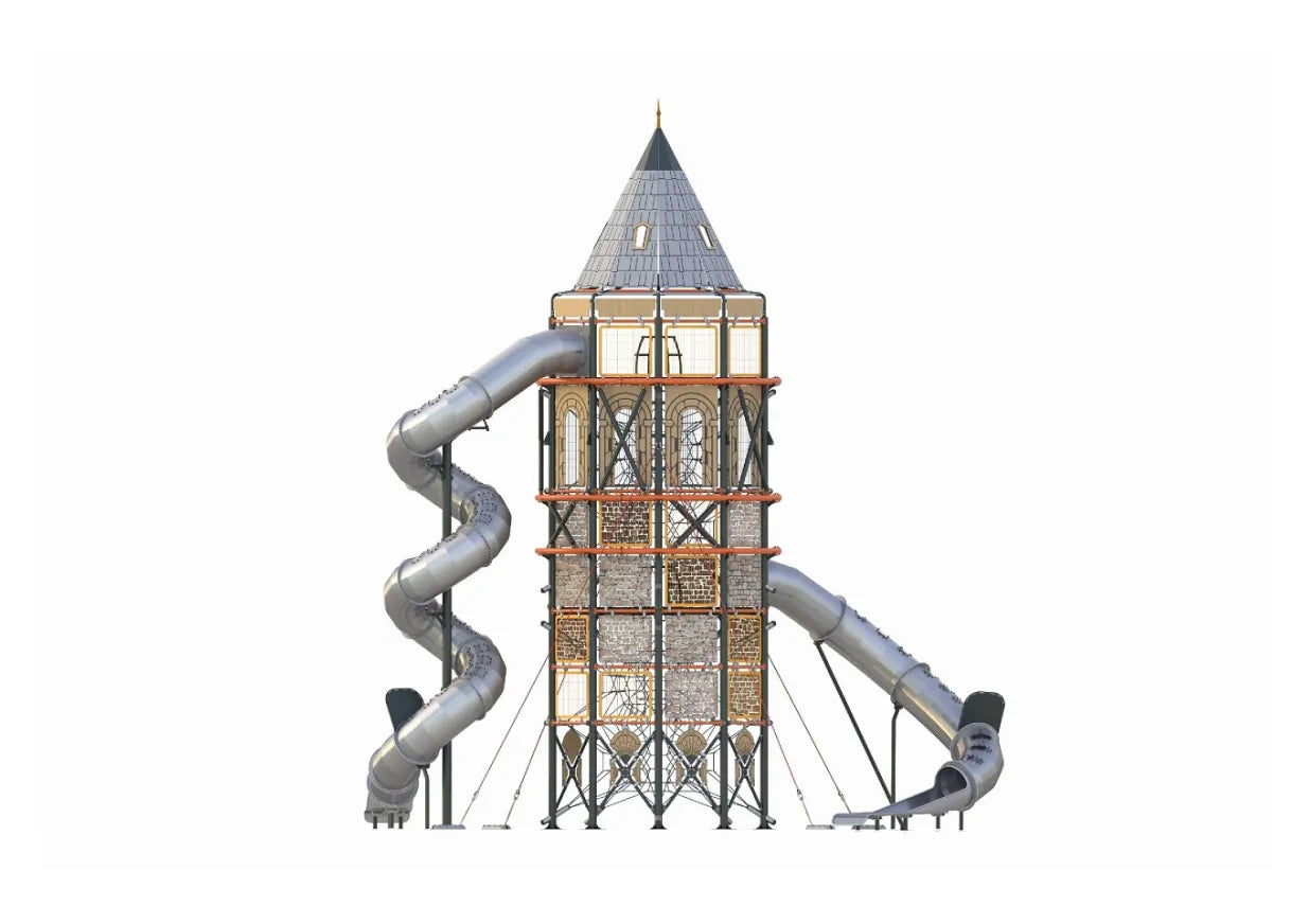 Galactic Guardsman draws its design inspiration from the renowned historic Galata Tower, echoing the architectural grandeur of one of the world's oldest towers. Designed to promote musculoskeletal growth in children, this playground structure incorporates a variety of climbing activities that challenge and engage. Equipped with a net climbing station, Galactic Guardsman helps develop key gross motor skills as well as balance and coordination. Constructed from durable cylindrical wood and featuring ramp exits for easy access, this structure ensures a secure and thrilling play experience. Beyond its playground functionality, Galactic Guardsman offers splendid cityscape views from its terrace, paired with the excitement of descending stainless steel slides for an unforgettable adventure.