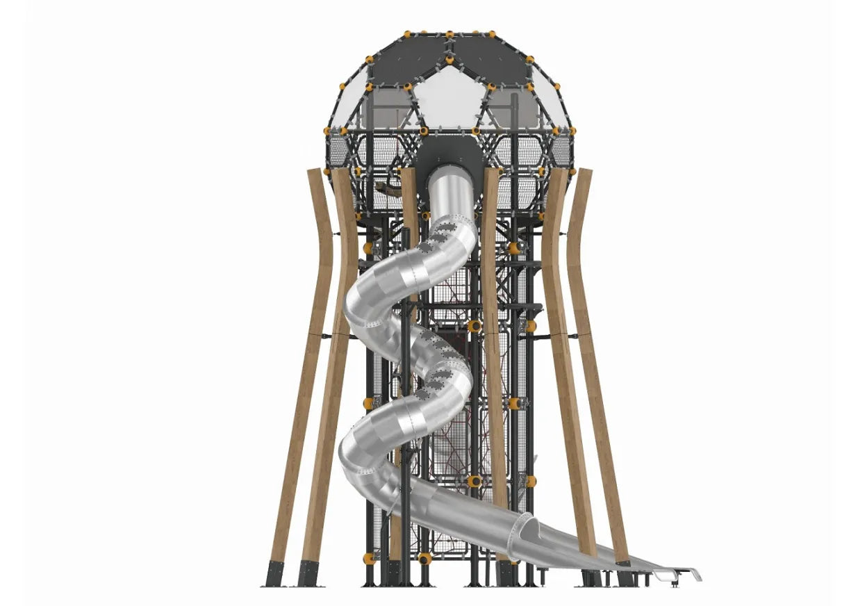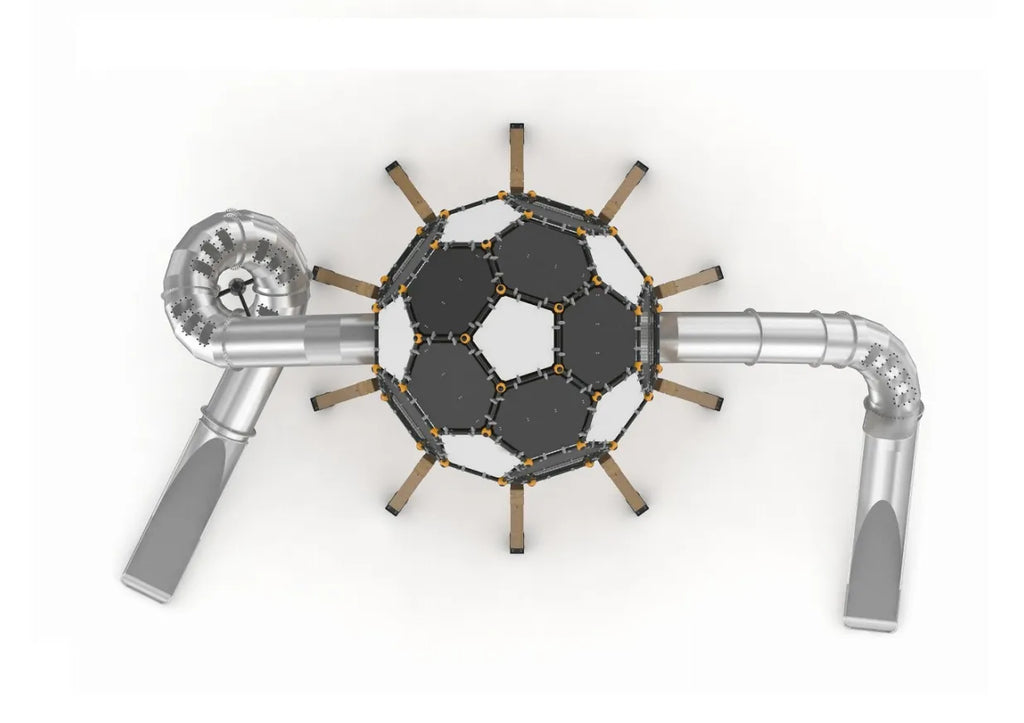 Goalkeeper's Gateway is crafted to evoke the spirited ambiance of the World Cup, immersing children in the global fervor and celebratory spirit that defines the iconic tournament. This play structure is outfitted with an adventurous climbing route that enhances motor skills and channels youthful energy into pure excitement as children climb towards the pinnacle. Designed to resemble a towering soccer ball, the apex of the structure celebrates the thrill of scoring a goal, giving children a sense of victory and achievement. The topmost viewing platform provides a panoramic perspective, heightening the thrill before children gleefully slide back to the ground. Goalkeeper's Gateway fosters not only vigorous physical engagement but also instills a sense of accomplishment and daring exploration in young adventurers.