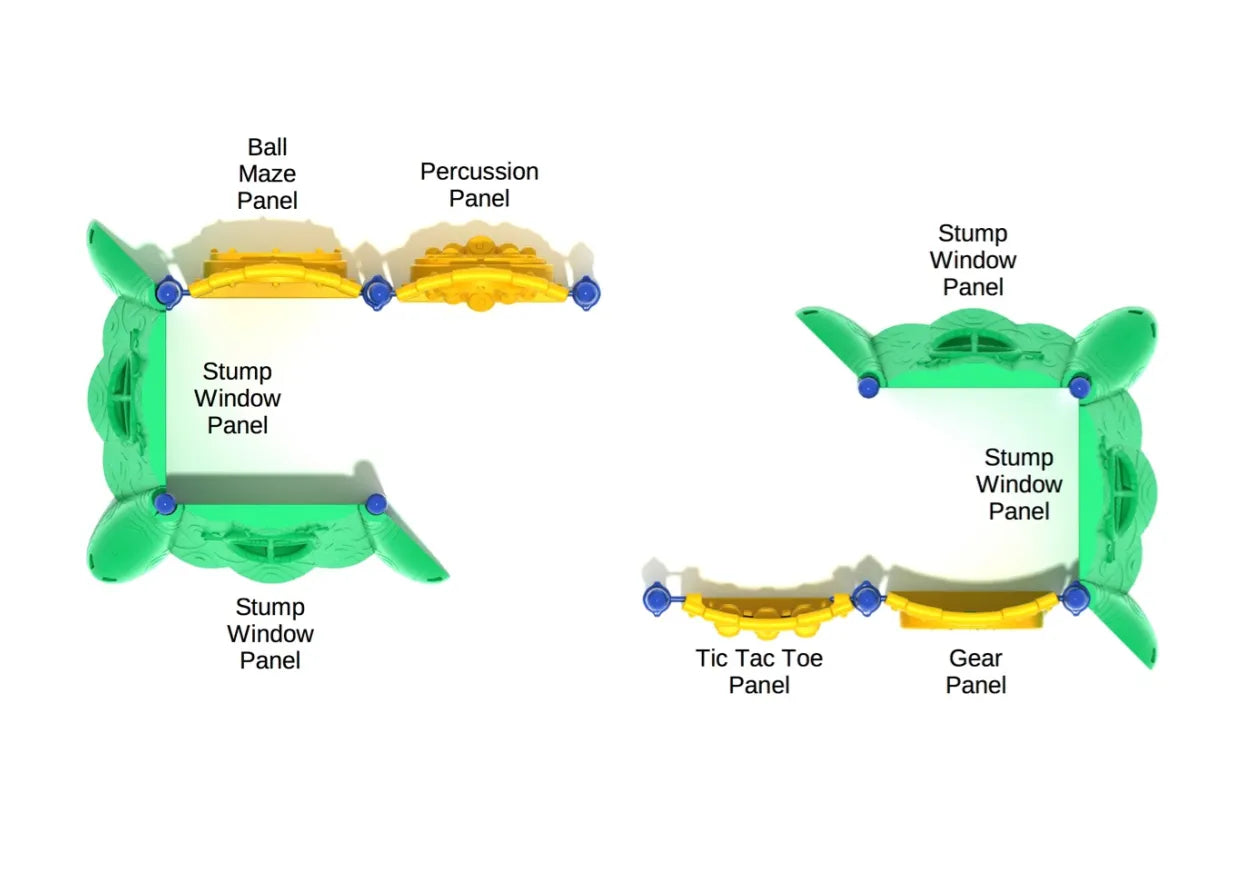 Kids often just need the space to enjoy their creativity and develop fine motor skills, and this is just what the Henry Hornbill offers. On both of the connected sections kids can enjoy the two Stump Window Panels which have been made from molded plastic in the shape and style of a tree trunk, complete with wood grain effect. They can pretend they are on the inside of a woodland house looking out at their friends playing in the playground. Each of the sections also has two interactive panels. The first has a Ball Maze Panel that has to be twisted around to get the ball to the center, and a Percussion Panel ideal for young children who love to create music. The other side has a Gear Panel so kids can see how different cogs work together. Finally, there is a Tic Tac Toe Panel which has spinning X and O cylinders so kids can practice their strategic and tactical abilities to not only try and create a line themselves, but also block their opponents moves.