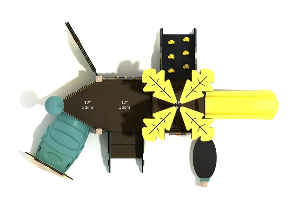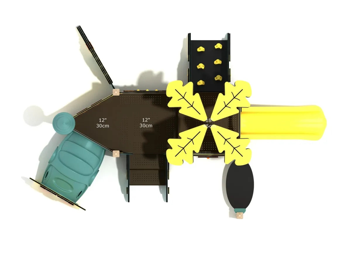 Let toddlers explore, crawl, and slide into fun with the enchanting Hibiscus playhouse. Designed for children ages 6–23 months, this colorful unit features a cheerful owl-faced crawl tunnel, a gentle climbing ramp, a leaf-decorated canopy, a bright yellow toddler slide, and interactive panels like a sunny clock face and flower mirror. The ground-level design promotes safe exploration while nurturing important early developmental milestones like gross motor skills, balance, and social play. With nature-inspired details and a layout that’s perfect for crawling, climbing, and sliding, Hibiscus brings engaging, age-appropriate adventure to daycares, preschools, and public parks. This structure comes in two variants: SteelGuard and SaltGuard. SteelGuard Canopy Minis are characterized by their galvanized steel posts and components with a wood grain finish, while SaltGuard structures feature corrosion-resistant stainless steel and aluminum, making them perfect for coastal environments with harsh weather.