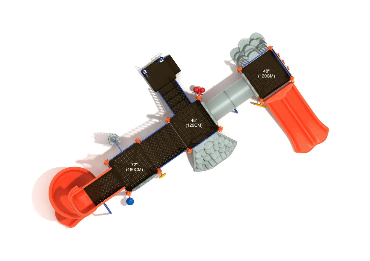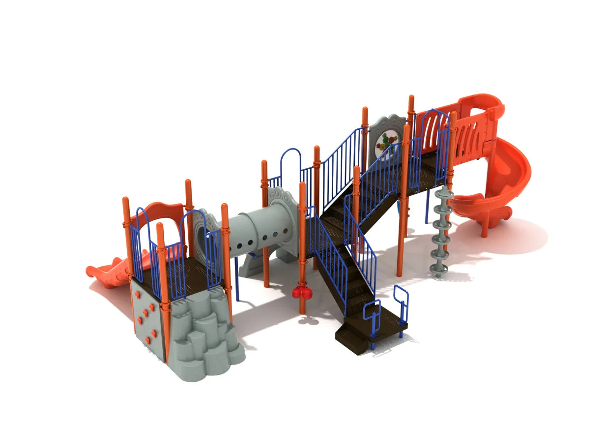 It's important to keep introducing new varieties to your park if you want children to return again and again. This Hillandale Play Structure should be your next best bet! It combines fun, adventure, and activity in one huge structure. Children can start by hopping onto the playset. They’ll have many climber options to choose from, but the rock wall, boulder climber, and pod climber are the best. Once they are safely on the structure, they can walk around and play with different activity panels. This is great for imaginative games and socializing. They can explore the structure further by crawling through the tunnel. It will feel like they are on a secret mission! For a ride back, they can take any of the attached slides. The Hillandale also has a shaded beneath the structure where the kids can relax before climbing onto the structure again. Since it has a durable construction, it will last for years at your playground.