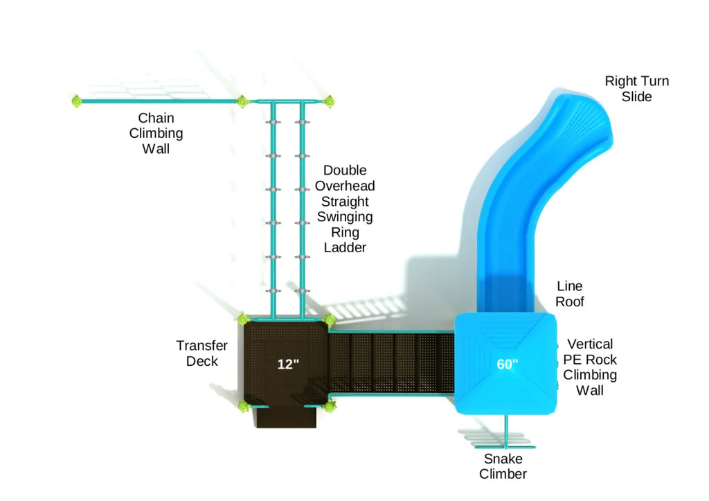 Homestead is full of challenges for hyperactive kids who also love to take on fitness challenges. Kids who just want to enjoy the slide can access it easily through the Transfer Station without any hassle. But kids who do not want it easy can either take the Snake Climber route or start from the Chain Climbing Wall. The Chain Climbing Wall is more challenging because kids will first have to climb to the top of the wall and then access the biggest hurdle, the Double Overhead Straight Swinging Ring Ladder. The Ladder has straps fixed for both hands that kids can use to swing their way across. It may look easy, but you will see kids struggling to cross their way through it. And that's exactly the kind of fun children want. Sturdy, fun, and challenging, all in one Homestead play structure.