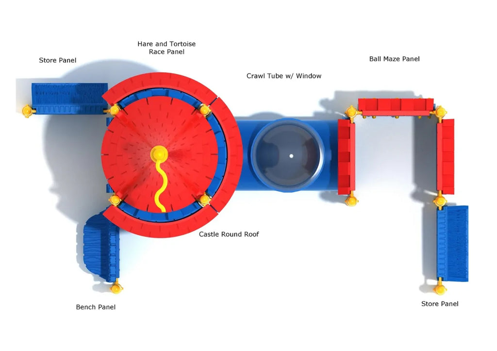 Want a playset for toddlers in your playground who can’t raise their little feet enough to be able to climb high surfaces? The Horizon's Camp is what you’re looking for. This ground-level setup is designed with the youngest children in mind, aged 6-23 months. The lineup includes interactive panels and thoughtfully chosen features dressed in an attractive castle theme. The Horizon's Camp can engage several kids with its two Store panels alone. Kids would love setting up imaginary shops in them and serving their customers. Under the Round Castle Roof, kids will find a Hare and Tortoise Race Panel that again can engage two kids at once. What will draw in kids the most is the Craw Tube with Window. It’ll invite kids to crawl through it to discover what’s hidden on the other side. Keeping kids in mind, the tube has a Window that lights up the interior so kids don’t get scared away. The Ball Maze Panel will also challenge kids to solve it, while the Bench Panel will let tired kids rest.