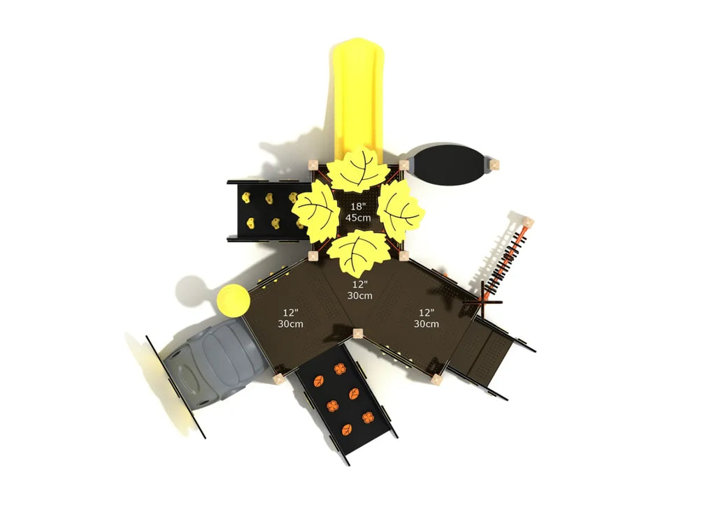 Introduce toddlers to a world of movement and imagination with Huckleberry, a nature-themed playhouse designed for children ages 6–23 months. This charming structure features a butterfly-shaped crawl tunnel, flower-decorated climbing ramp, interactive mirror gear panel, and a leafy canopy roof for visual interest and light shade. With ground-level access and rounded play components, Huckleberry promotes gross motor development, tactile learning, and early social play in a cozy and secure environment. Ideal for early childhood centers, public parks, or preschool playgrounds, this playhouse encourages exploration and creativity while providing safe, enriching fun for little learners. This structure is part of the IronClad Series, and is characterized by its galvanized steel posts and components with a wood grain finish. IronClad Canopy Minis offer long-lasting durability and visual warmth in any setting.