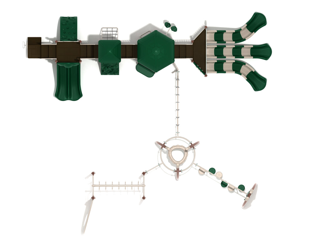 The Huntsville Playground Structure is a powerhouse of excitement, offering endless opportunities for adventure and growth. Designed for children ages 5–12, this sprawling commercial playset combines the thrill of three wavy slides with the challenge of multiple climbing features and bridges. Kids can race down the triple slide, scale the rope ladders, or test their balance on the stepping pods, building confidence and coordination with every move.Engaging play panels and overhead ladders encourage social interaction, teamwork, and imaginative play, making Gadsen a centerpiece for any school, HOA, or public park. With durable steel posts, heavy-duty plastics, and UV-resistant roofs, it’s engineered to withstand years of energetic play while keeping children safe and secure.Bring your community together with the Huntsville — a playground that challenges bodies, sparks minds, and creates memories that last a lifetime.