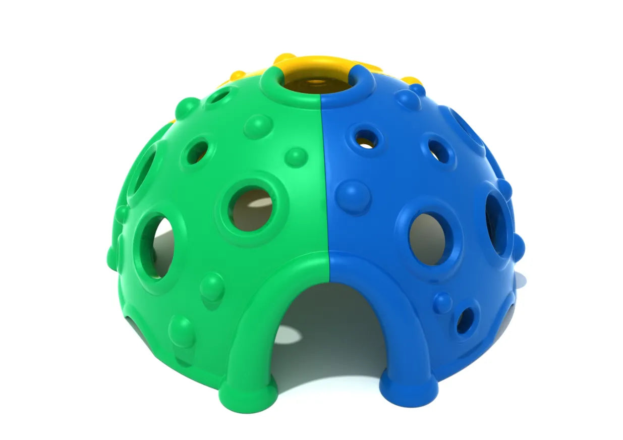 Children can unlock a world of adventure with this abstract structure in their playground. There is so much fun to be had on Logan’s Dome. The equipment is covered in small and large holes as well as bumps that can all be used to scale the outer surface as if they were climbing some futuristic space mound on the moon. Children can also use the interior as a den to pretend they are animals in a cave or even just chill out in there reading a book, playing a game, or simply engaging in social interaction. A fun game to play on Logan’s Dome is to have one team on the inside and a team on the outside, each with a set of balls, and they have to pass their colored balls back and forth through the holes and the team that gets rid of all their balls first is the winner. The durable hard plastic ensures the dome will last for years and years.