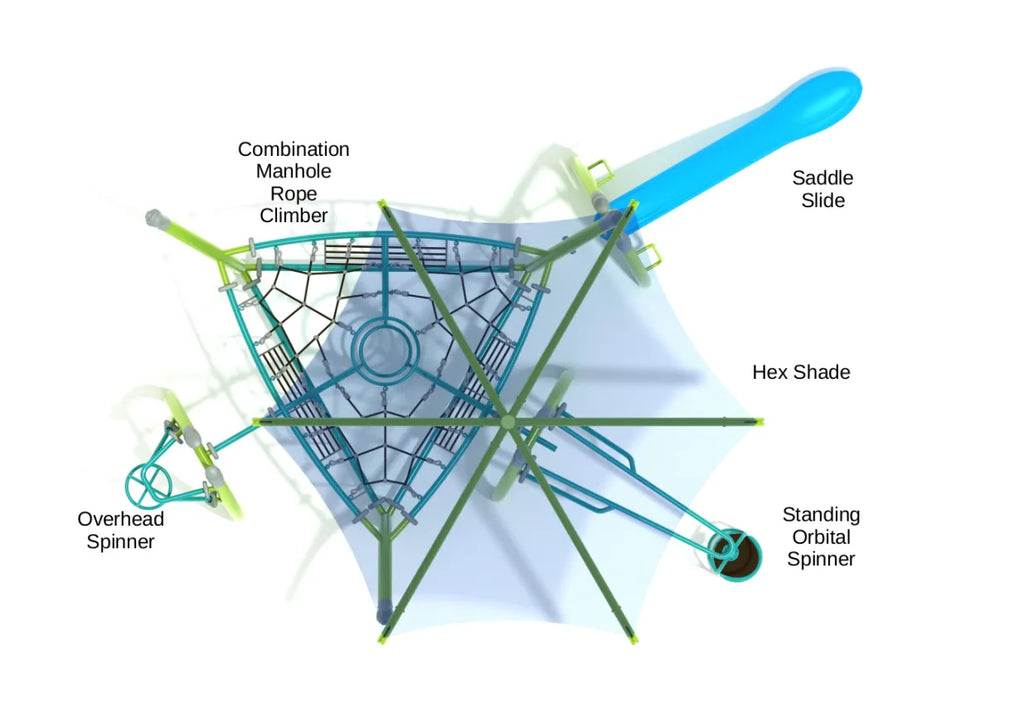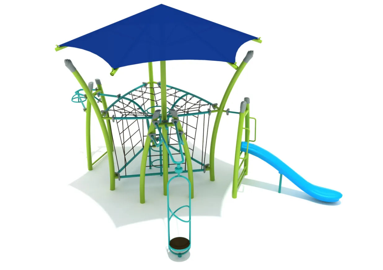 True to its name, Lost Mine proves to be as exciting as exploring abandoned cave mines but, of course, with safety. A nylon-encased steel cable lets kids work on their climbing skills & navigate the grid with ease. They can come down via a funky Saddle Slide after they’ve played enough. The Standing Orbital Spinner lets kids spin around like whirling dervishes and stimulates their senses via the power of motion. They can discover the value of controlling momentum in the Overhead Spinner. The shaded design of the Lost Mine protects kids from the sun so they’ll have a good time with pals without getting sunburned. The Lost Mine’s different interactive & exciting components toss kids into a world of imagination. They can imagine chasing ghouls or discovering unmapped pathways in a land of adventure. A variety of climbing features will keep children physically active and creatively engaged. They will learn how to plan their next path, which it will teach them problem-solving.