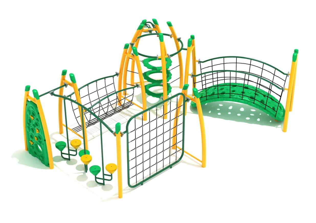 Every kid loves to climb, spin, jump, and overcome challenges. Instead of adding different equipment for each activity, you should consider the Magnet Cove Playground System. It has everything a child needs for an enjoyable play session. Children can start their adventure by climbing onto any of the attached climbers. Play options are abundant in this structure. The Floating Bridge is every kid’s favorite. Its uniqueness makes it more exciting as it’s not like traditional bridges. Instead, children have to use their momentum to go across skillfully. The ropes of this bridge are made of steel. They are highly sturdy while also super comfortable to grip. The Tower of Rings is another feature of the Magnet Cove that children love. It provides them with an opportunity to flaunt their climbing skills. Other elements like the Net Climber and the Overhead Spinner ensure kids have plenty of options to play with. It’s truly a great investment in making your park a go-to spot for kids who love adventures.