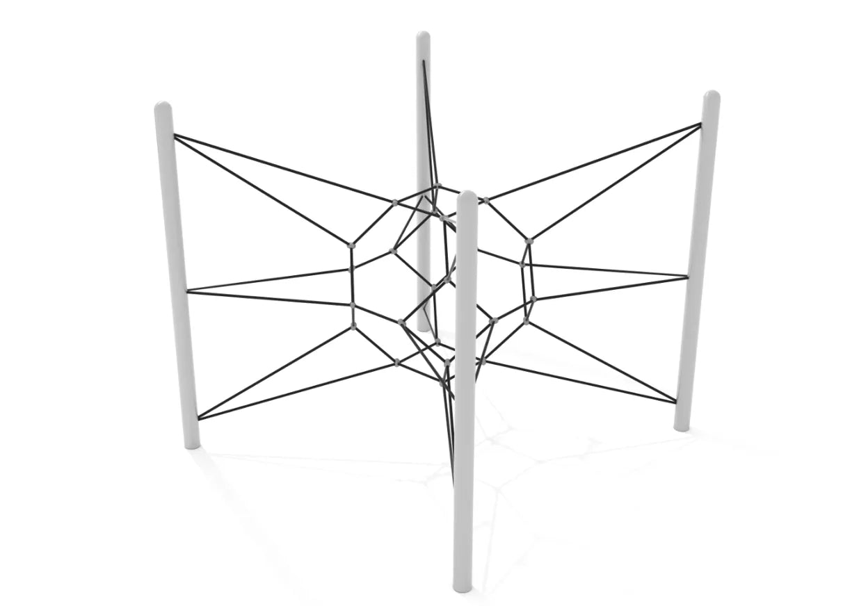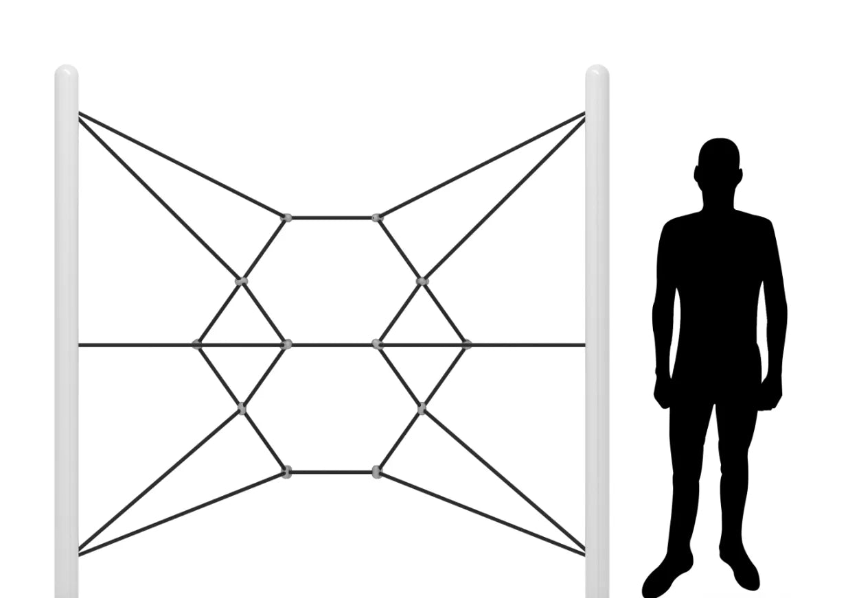 The Nebular Net, with its wild pattern of ropes, gives kids a thrilling place to let loose and have fun. At first glance, it’s the round design that catches your eye. This round mesh of ropes is supported by four strong metal posts stationed at each corner. There are endless angles for kids to grab for support, thanks to the web of stacked squares and hexagons inside. The ropes making all these shapes are steel-cored with a durable nylon exterior. The nylon coating adds a softer grip, so little hands will stay comfortable while scaling the structure, while the steel inside allows for years of climbing. And with four sturdy metal posts holding everything together, you can also bet on this thing’s stability no matter how many kids are scrambling over it. Durability aside, kids will be getting a solid full-body workout without feeling like work. Every move builds strength in those core muscles, arms, and legs, which is exactly what growing bodies need.