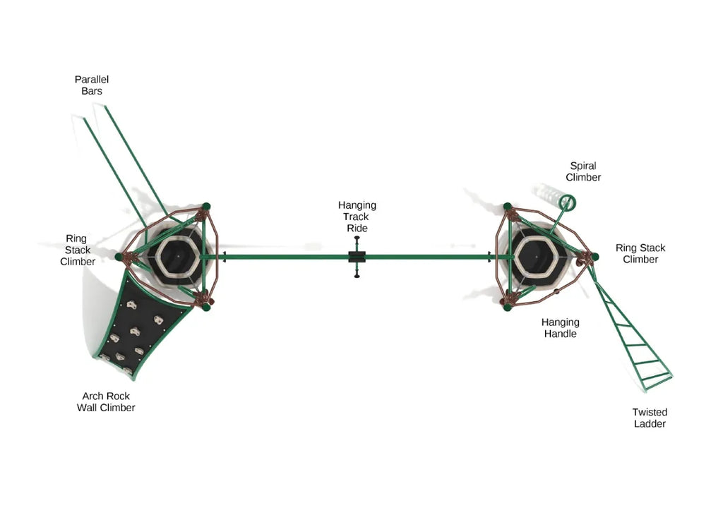 Fuel physical adventure with Nine Mile Canyon, a climbing structure that mixes bold features with compact versatility. Kids can climb the spiral tower, cross via the glider track, or ascend using angled ladders and pod steps. Designed for ages 5–12, it boosts motor skill development and offers a variety of challenges for group or solo play. Its unique layout adds bold appeal to parks and schoolyards.