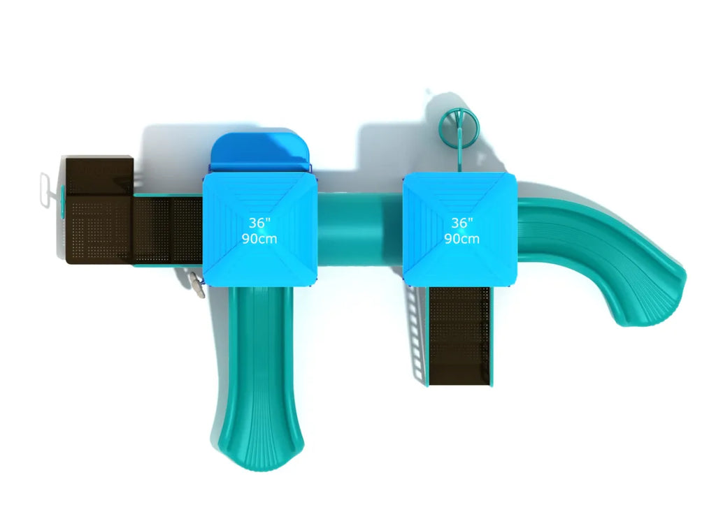 As a hub for playground fun, the Olympia play structure is certain to offer kids everything that they're looking for. While places for kids to climb and slide are to be expected on most complete play structures, Olympia playgrounds have extra features that make this truly a unique and wonderful model. It has a gear panel built onto one of the upper platforms, which has colorful plastic gear shapes that kids can rotate, perfect for kids who love problem-solving. Directly below that, kids can relax at the bench panel, where they can sit and socialize with their friends. The Olympia playground structure also features a raised tube bridge, which links the structure's three-foot-tall platforms. The spiral climber has a tightly coiled metal shape that provides a unique climbing challenge for kids, encouraging them to go around and around instead of just up. And of course, there are two exciting slides: a wave slide and a right-turn slide. An Olympia playground set is a perfect match for preschools, designed for children between 2 and 5. It's ADA-compliant, and it's not too tall; it could even be used in indoor playgrounds if you have a large room to work with. Olympia playgrounds have a double tower configuration that helps to keep foot traffic flowing, and the shade covers on top of the towers protect children from sunburn and overheating. The durable plastic is a safe material for young playground adventurers, with no snags and cuts coming from the rounded edges. And the support structure is made from sturdy steel that can withstand years of use and whatever the weather can dish out. All of these factors come together to make the Olympia playground structure both practical and enjoyable for kids. Order yours today!