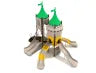 The Oracle's Library is a no-nonsense castle-themed playset with a focus on slides. Unlike other castle series playsets, this one has a decluttered design with only slides, climbers, and a couple of ground-level activities. For a gentle start, the Transfer Station stairs offer a quick and easy route to explore the slides. Kids wanting to scale the structure in style can use the Draw Bridge Climber, which is also good for improving their balance. Above the playset, kids have not one, not two but four slide options. The first slide they’ll come across is the Double Slide which two kids can attempt at once in a friendly competition. A little above are three more slides, each ready to offer a different experience. This includes a bumpy Wave Slide that bounces kids on the way but lands them safely. The remaining two are the Left Turn and Right Turn Slides, which take kids on a curvy ride. Kids on the ground can play with the Ship’s Wheel, Bongos, and a Store Panel.
