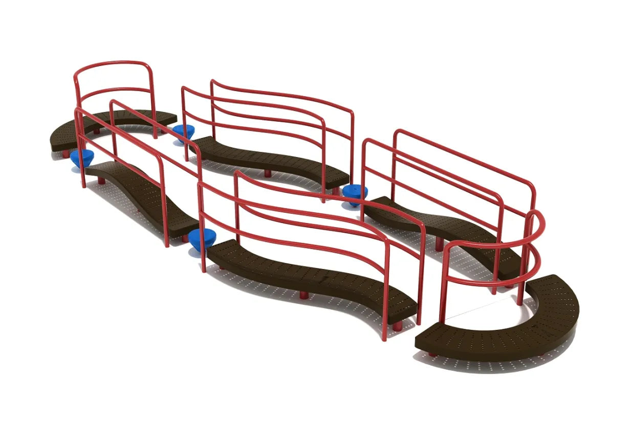 Learning how to balance yourself is an important skill for children. It teaches them better control of their bodies. With our Oval Balance Track, you can help them learn this vital skill without making it feel like a lesson. It presents a fun and engaging way to learn important physical skills. The structure has many twists and turns that kids will love crossing. It gives them a chance to develop their problem-solving skills, too. The platform’s varying heights present different challenges for children at every stage of the journey. But it’s all constructed with safety in mind. The entire structure has galvanized steel guardrails. This ensures the kids have something sturdy to grip while they are walking. Walking on the Oval Balance Track builds spatial awareness, mobility, and balance. Another excellent feature of this structure is its low height. Since toddlers are often scared of larger equipment, they can safely and confidently walk on this one.