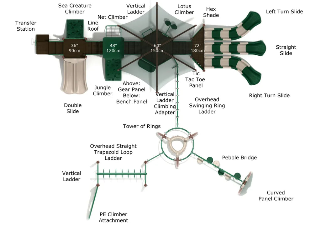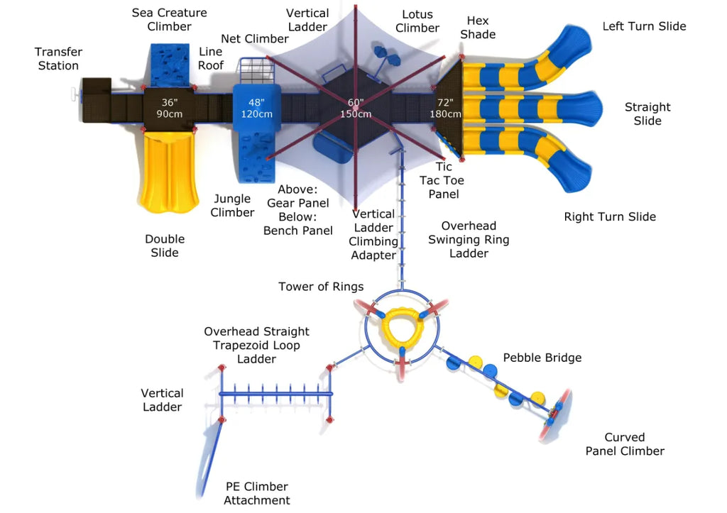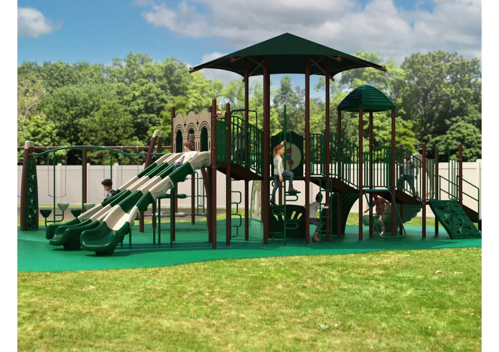 Kids really appreciate variety. But you don’t need to invest in different playground structures when this Pioneer Place offers everything. It is a massive structure that offers plenty of activities to keep children busy. To begin their adventure, kids simply have to climb onto the structure. But wait, there’s a twist. With so many attached climbers, which option should they choose to be the first one at the top? The Pioneer Place features a Sea Creature Climber, a Jungle Climber, a Curved Panel Climber, a Net Climber, and a lot more! It's surely a tough decision to make, but once they make up their minds, it only gets better. On the elevated platform, children will find a Tic Tac Toe Panel and a Gear Panel where they can play exciting games. The best part? This structure is entirely shaded, so even those warm days won’t be enough to keep kids away from your playground. Once they are finished playing, they can whoosh down using any of the four exciting slides.
