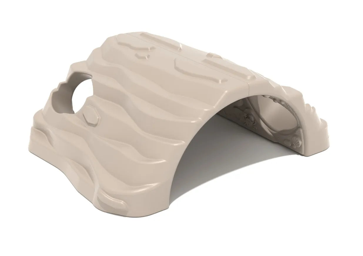Give your playground a splash of undersea fun with Poseidon’s Hideout, the perfect blend of adventure and imagination! This play structure features an arched shape that children can crawl under or climb on top of. The outer sides have flat ridges that make it easy to climb, and the top is broad enough for children to sit on it or stand up and “surf the wave.” For more nautical fun, they can plunge into the murky depths either by crawling through the entrance of the tunnel or diving through one of the holes on either side. There, they will be greeted by the friendly faces of smiling sea creatures. The detailed 3D images on the underside of the tunnel contain fish, coral, and even octopi, which children can feel as well as see. The tunnel has a clearance of about three feet, allowing youngsters to navigate it with ease. This durable play structure is designed to last, built with high-quality materials that withstand the elements and frequent use, ensuring that Poseidon’s Hideout will remain a playground favorite for years to come. Available in blue, tan, or a variety of customizable color schemes, it integrates seamlessly into any playground theme, especially ones with a natural or nautical aesthetic. Ideal for children ages 2 to 12, Poseidon’s Hideout challenges different age groups with appropriate climbing features that promote physical development like balance and coordination as well as cognitive skills through imaginative play. The broad top and accessible ridges make it easy for younger children to use, while the more adventurous older children can enjoy more challenging climbs. By incorporating Poseidon’s Hideout into your playground, you’ll provide children with a multifaceted play structure that supports social play in group settings, helping them build crucial interpersonal skills and increasing the educational value of your playground. Order yours today!