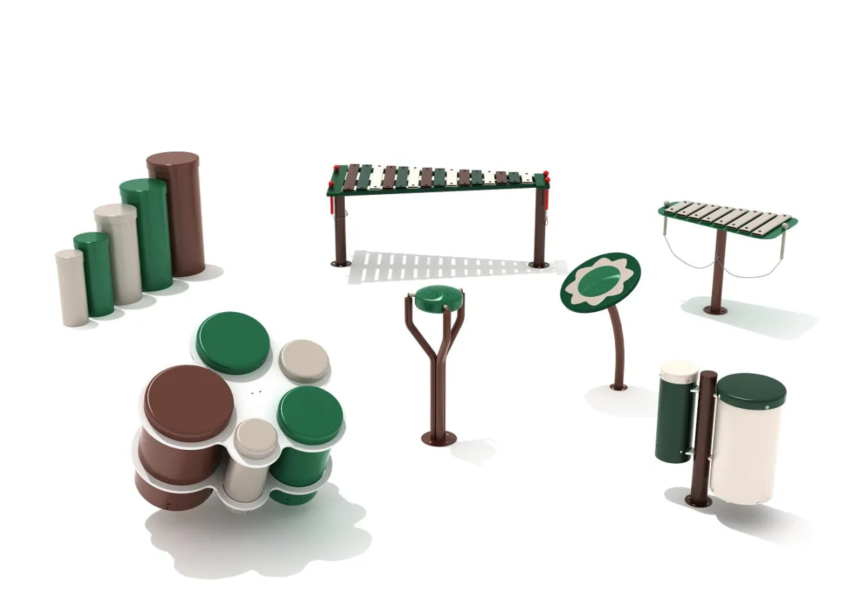 The Premium Percussion Symphony of 7 is a complete musical ensemble designed to let children lead their own percussive band right on the playground. This collection features seven diverse instruments that together provide a comprehensive platform for young musicians to collaborate and explore various musical sounds. The set includes the Honeycomb Hand Drum Set and the Treble Tongue Drum, perfect for introducing children to the basics of percussion. For those intrigued by melody and rhythm, the Metallophone and Glockenspiel are excellent for budding xylophonists. Adding to the variety, the Flower Drum, Simple Bongos, and the Standing Drum Quintet expand the musical possibilities, allowing a complete group of young players to engage in creating harmonious tunes. The Premium Percussion Symphony of 7 invites children to experience the joy of music and teamwork on the playground.