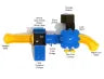 The Provo play set brings an exotic experience with many awesome features included under the tropical Leaf Roof which provides shade in summer and also shelter from rain showers. The Sea Creature Climber is an inventive way to get to the upper platforms by using indented spaces for foothold and 3D starfish and shells for handholds to propel them upwards. Adjacent to this is the Pea Pod Climber which features leaf-like platforms extending from the sides like a growing plant. When they’ve completed their climb children are presented with numerous options to enjoy including an Inclined Tube Bridge where children can pass each other on hands and knees, a Straight Slide to whizz down fast or a Right Turn Slide to add a twist to their descent. A Store Panel and Ship’s Wheel inspire adventure and creative thinking while the Gear Panel offers a tactile experience with colorful turning cogs. Withstands many years of outdoor use and requires minimal maintenance.