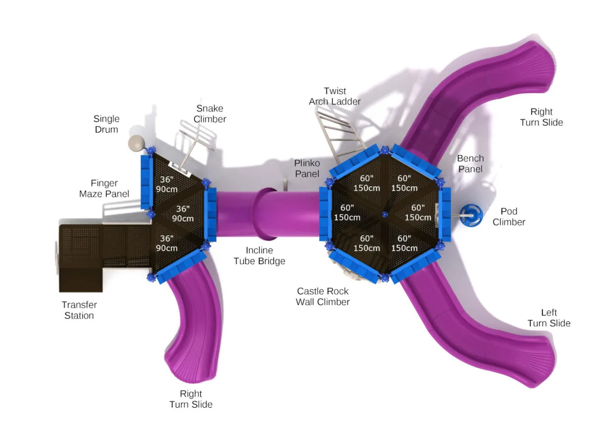 The Rightful Reign is an attractive castle-themed playset with fun activities galore. It’s one of those setups that have most of its fun activities on the higher decks. So kids will have to show some effort to enjoy the fruits. They have five ways to reach the upper decks. To make sure kids of all abilities and ages can join the fun, the Rightful Reign offers an easy to scale Transfer Station staircase. But daring kids will still choose the other four challenging climbers, including the Castle Rock Wall Climber, Snake Climber, Twist Arch Ladder, and Pod Climber. Kids who use the stairs will have to use the Incline Tube Bridge to reach further up. The Rightful Reign has three fun slides in total, which means there won’t be any lines or quarreling over who goes first. The two Right Turn Slides of different heights and the Left Turn Slide each offer a unique thrilling experience. Aside from slides, kids can solve the maze on the Finger Maze Panel or play with the Plinko Panel.