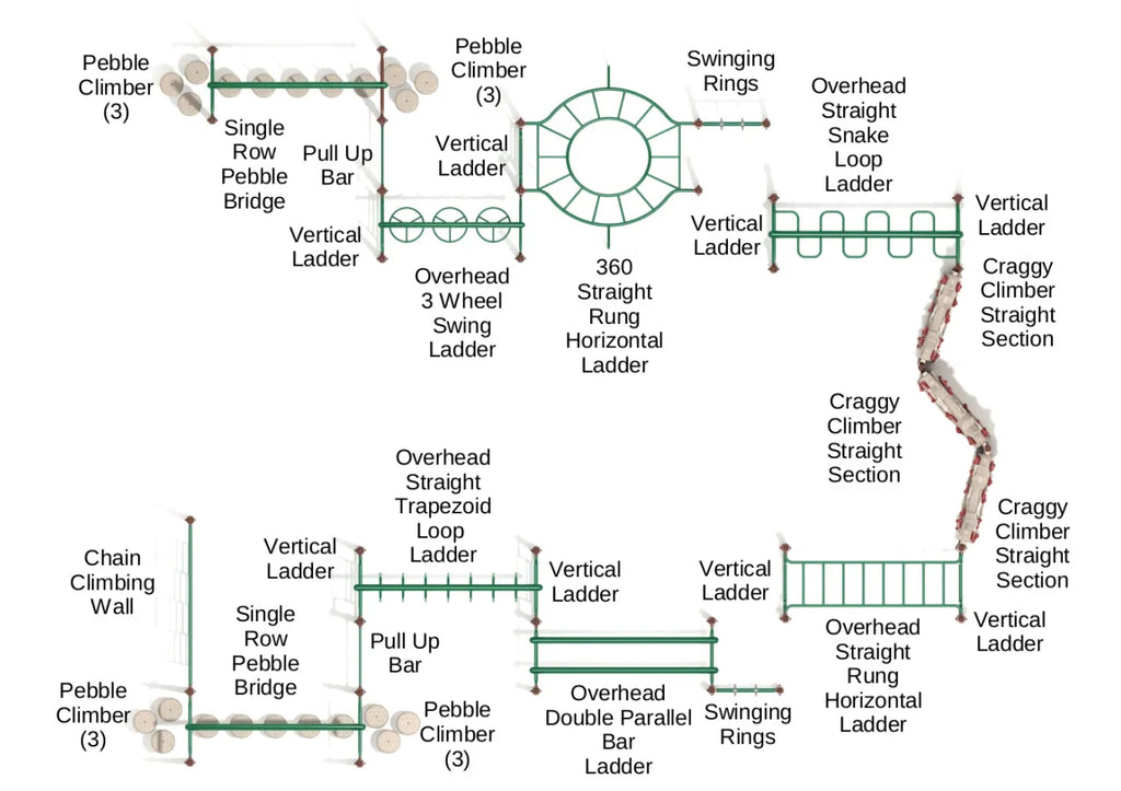 Children love new challenges, and with this Rotanda Play Set, they can safely push their limits. With a range of components, the Rotanda can satisfy their needs for physical play and healthy competition. It’s a large obstacle course that can accommodate up to 50 kids at once, and with its thrilling features, none of the kids will feel bored! The first obstacle is the Pebble Bridge and it can only be crossed with steady balance and footwork. The Overhead Climber is where they’ll get a chance to test their upper body strength, as it takes the fittest of all to reach the Craggy Climber. And that’s when the real challenge begins! The entire play system is designed to build fitness and strength, so it’s fun and training combined. The Rotonda playset can be placed in different commercial playground layouts. You can also use it to conduct physical fitness tests and competitions among kids.