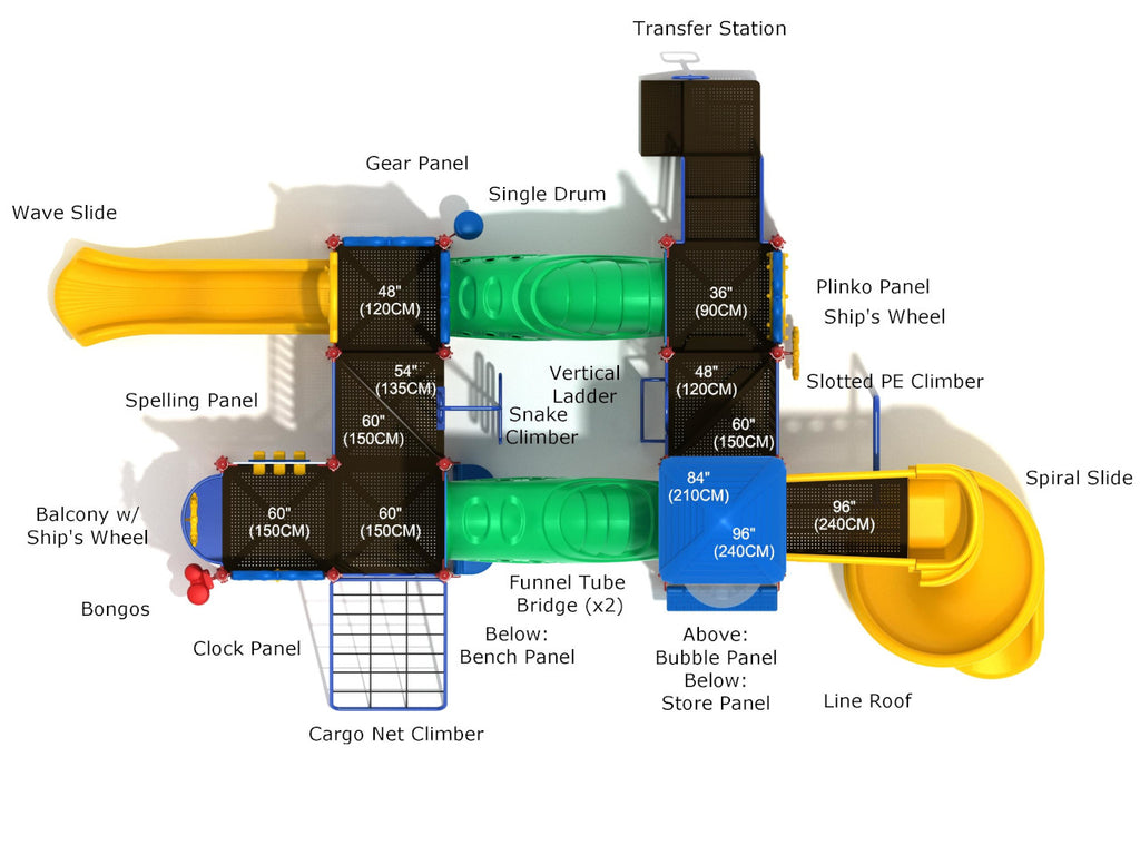 Named after a city in Idaho, this medium-sized structure offers two exciting slides to young park visitors. Equipped with Plinko and Gear Panels, Soda Springs will quench their thirst for adventure with its many amenities. The Ship’s Wheel will create a pirate-themed adventure, prompting kids to explore the high seas. They can use Bongos to signal Man Overboard and All Hands On Deck. The Single Drum will let them put on musical performances for other old salts, pretending to be lively Jack Sparrow. Soda Springs has different climbers that prompt children to compete with pals. They can create an obstacle course involving the Snake and Slotted PE Climbers. Soda Springs even has room for educational playtime in the form of a Spelling Panel and a Clock Panel. Kids can create spelling bees or solve math problems with pals, blending learning with fun. When they’re tired, they can simply descend from the play structure via the Wave or Spiral Slide.