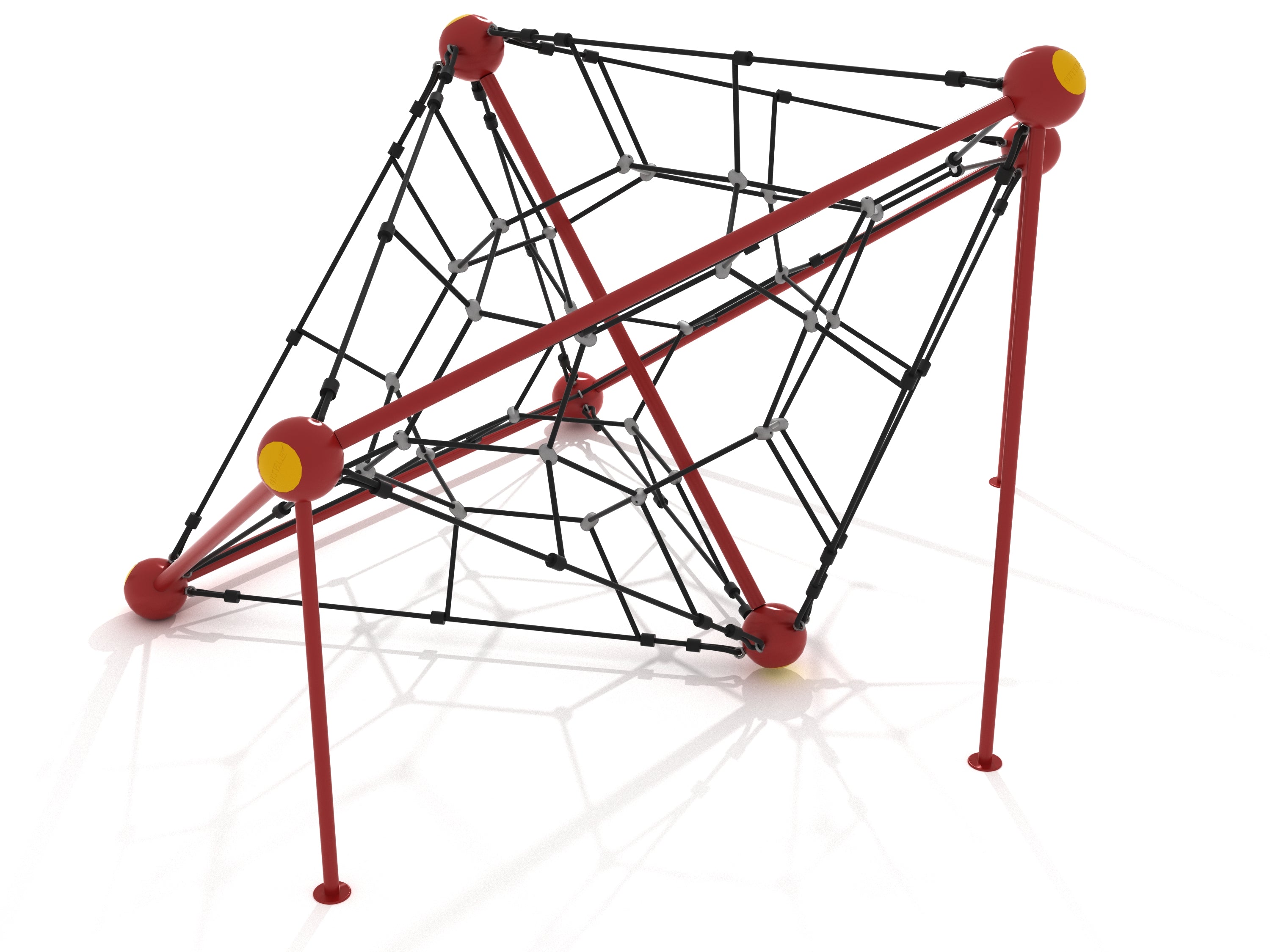 The Solar Flare Playground Climber brings kids together for hours of climbing adventure. With its eye-catching pyramid design and strong interconnected ropes, this structure challenges children to reach higher, test their balance, and strengthen their muscles while having fun.From small steps to daring climbs, Solar Flare offers an inclusive play experience that encourages social interaction and builds confidence. Its sturdy construction and steel framework ensure reliability in busy play environments, making it a perfect addition to schools, city parks, and community playgrounds.Designed for long-lasting use, Solar Flare delivers safe, active fun that keeps kids engaged and communities coming back.