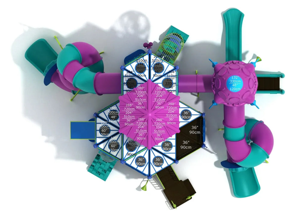 Soar to new heights with the Space Needle Navigator—a towering play structure engineered for non-stop excitement! Packed with winding tube slides, angled climbers, elevated crawl spaces, and engaging activity panels, this structure takes kids on a vertical journey of fun. Its tiered platforms and skybridge walkways encourage climbing, sliding, and imaginative play at every level. Designed with aerospace flair and treehouse-style roofs, it adds a bold, adventurous aesthetic to any playground. Ideal for ages 5–12, the Space Needle Navigator delivers high-action play and developmental benefits, all in a smart, space-efficient layout. Elevate your playground with a structure that inspires movement, exploration, and out-of-this-world fun!