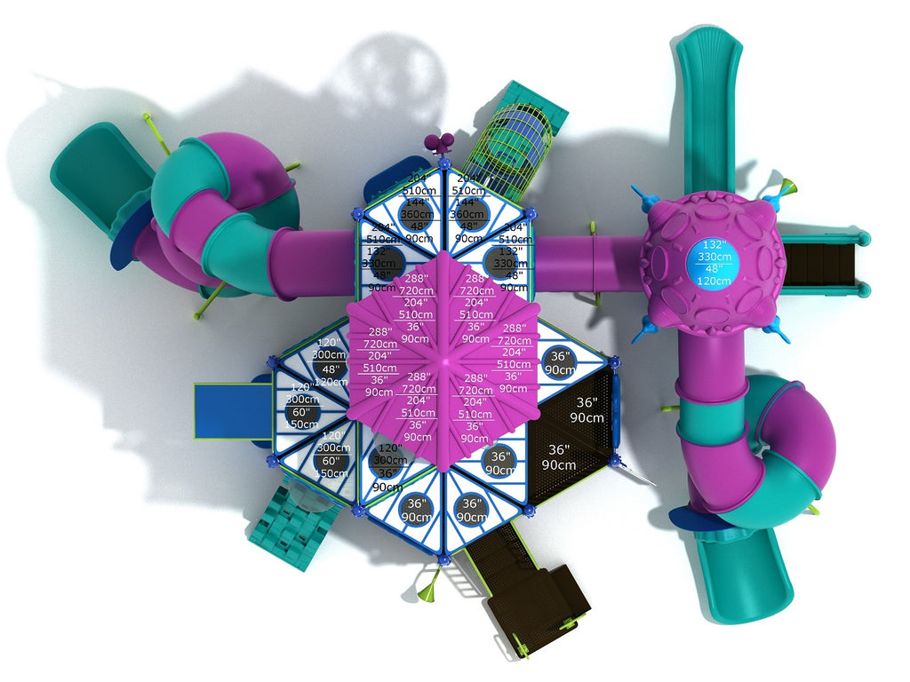 Soar to new heights with the Space Needle Navigator—a towering play structure engineered for non-stop excitement! Packed with winding tube slides, angled climbers, elevated crawl spaces, and engaging activity panels, this structure takes kids on a vertical journey of fun. Its tiered platforms and skybridge walkways encourage climbing, sliding, and imaginative play at every level. Designed with aerospace flair and treehouse-style roofs, it adds a bold, adventurous aesthetic to any playground. Ideal for ages 5–12, the Space Needle Navigator delivers high-action play and developmental benefits, all in a smart, space-efficient layout. Elevate your playground with a structure that inspires movement, exploration, and out-of-this-world fun!