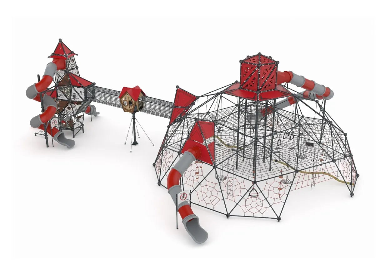 Step into a world of magic and motion with Spellcaster’s Summit—a towering play experience that brings fantasy to life! With multiple slides, towering rope nets, and mystical bridges, this structure lets kids ages 5–12 climb, crawl, and zip through an imaginative landscape. Enclosed slides spiral down from high towers, while suspended walkways and climbing webs challenge coordination and teamwork. The enchanted design, highlighted by a red and gray color palette, turns any playground into a storybook escape. Perfect for parks and themed play spaces, Spellcaster’s Summit conjures unforgettable adventures at every level.
