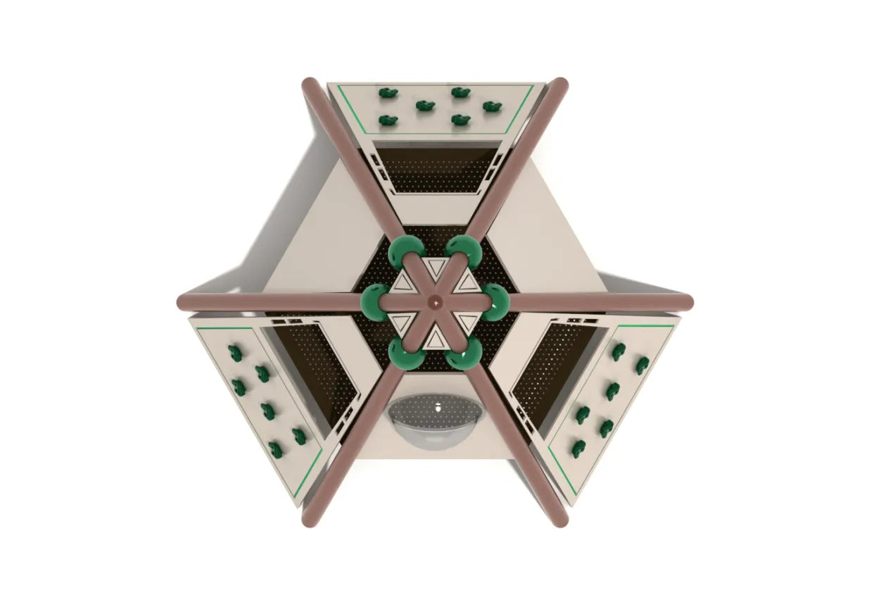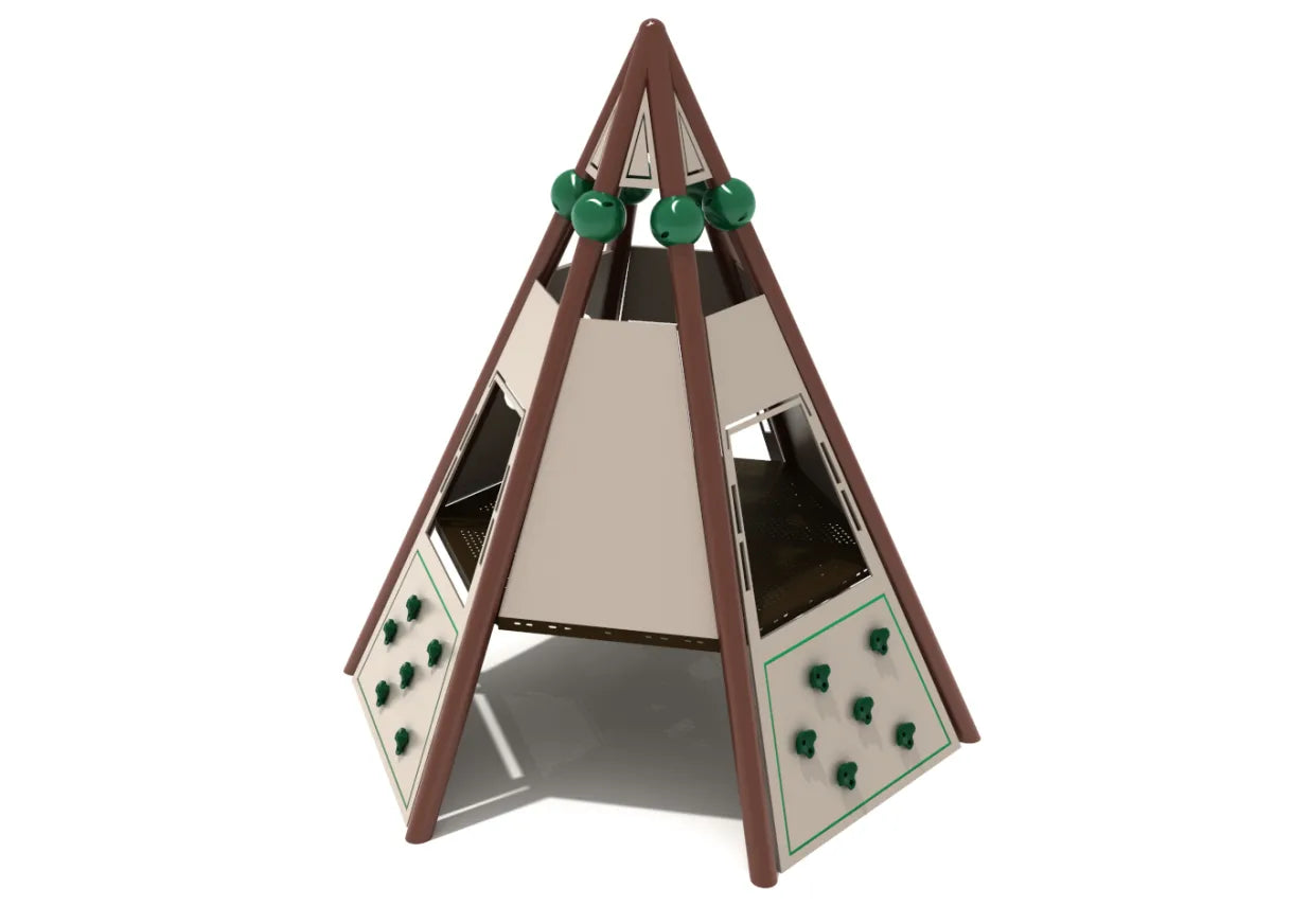 Shaped like a conical tent, Teepee Hideout resembles a futurist alien hideout. It sets the stage for all sorts of imaginative, creative play in kids of all ages. This compact play structure is a must-have for every playground because of its unique design & colors. Kids can pretend to be spacefaring, vagabond pirates looking for sci-fi treasures. They can also tell stories to each other as if gathered around a campfire. Teepee Hideout shelters them from sun & rain, creating a safe and comfortable play area for them. It also has a Rock Climbing Wall where children can get the thrill that comes from climbing. A Bubble Panel lets them see inside & outside the structure and lets them pretend like they are protecting their citadel from imaginary robbers. This way, Teepee Hideout adds excitement and challenges to kids' playtime. It sparks a kid’s curiosity and is sure to attract young adventure lovers.