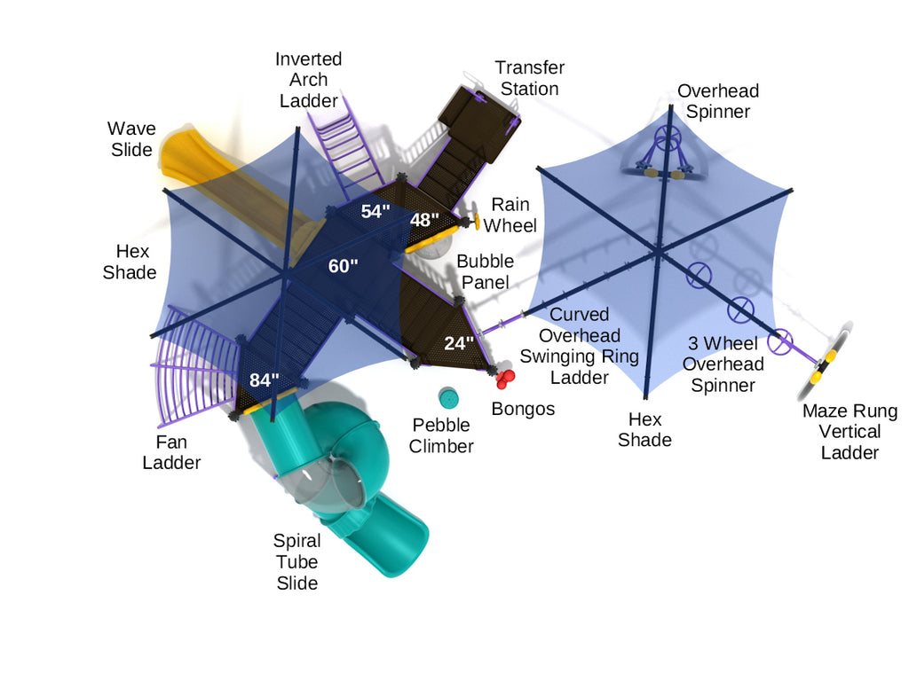 Vista Village is an ideal play system that lets kids explore their surroundings and engage creatively in a new environment. With 2 hexagonal-shaped shades and multiple slides, the Vista Village is the perfect play structure for small-to-midsize playgrounds. It reminds kids of sweeping lawns and perfectly landscaped vistas shown in movies. Imagine the fun kids will have when riding the 7-foot Spiral Tube Slide and 5-foot Wave Slide. The Pebble Climber will keep them active the entire time. Thanks to the huge shades, young troublemakers can have fun even when it’s too sunny outside. The Vista Village offers diverse ways to climb the structure based on difficulty levels. The Maze Run Vertical Ladder develops kids’ upper body strength. Climber features of the play system add to the excitement and gameplay. Made with high-quality materials like steel and roto-molded plastics, the Vista Village is extra durable. It blends imaginative games with physical fitness and safety.
